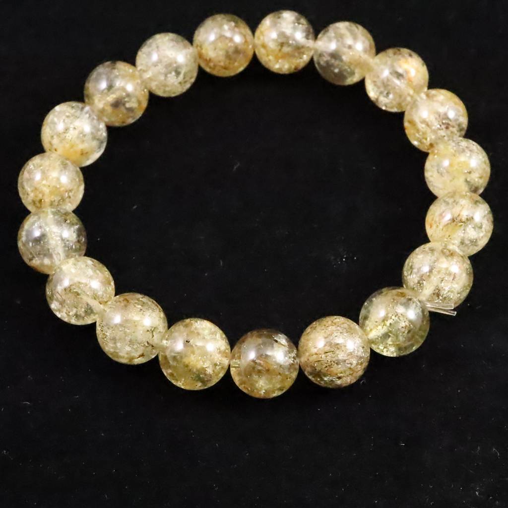 ゴールデンスキャポライト 黄金柱石 10.5mm玉ブレスレット 31.5g (ID:48599)