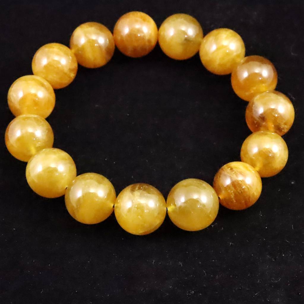 ヘリオドール イエローアクアマリン 14mm玉ブレスレット 64.7g (ID:63551)