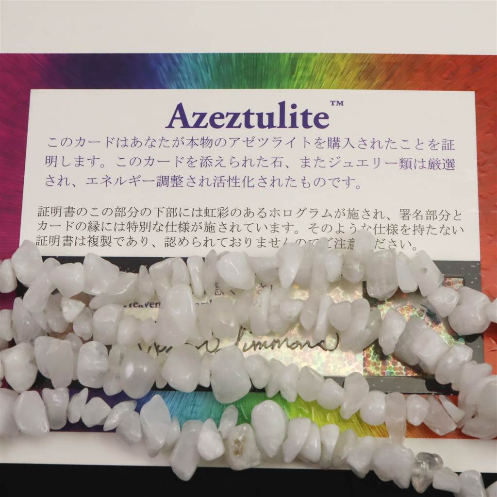 ◆ ロバート・シモンズ氏より....アゼツライトは、アメリカのバーモント州とノースカロライナ州及びインドの特定地区でのみ発見される、エネルギー的にとても活性化した性質を持つ特殊な水晶につけられた名称です。ほとんどのアゼツライトは白色か無色で、多面的な柱状ポイントには結晶しません。この石の名称は、惑星の目覚め(進化)を促すためグループで働いている天使的な存在「アゼズ」に由来しています。「アゼズ」は、宇宙の核であり根源的な光の源であるグレートセントラルサンの「名無き光」を私たちに届けるため、その偉大な容量を保持できるようにこの石を設計したのです。人類と地球が、より高い周波数のもとで再び繋がるために、この時代にアゼツライトは目党めさせられ、わたしたちの前に現れたのです。アゼツライトは、「アゼズ」による再組成によって高い霊的な目覚めを促す作用と同様に、病や衰えにつながる習慣的パターンを解消することも使命として持つようになりました。多くの人がアゼツライトを持ったときに感じるぞくぞくするような身体の感覚は、アゼツライトの光を受け取った身体とエーテル体が尊い「TheNameless Light (名無き光)」に反応している証なのです。