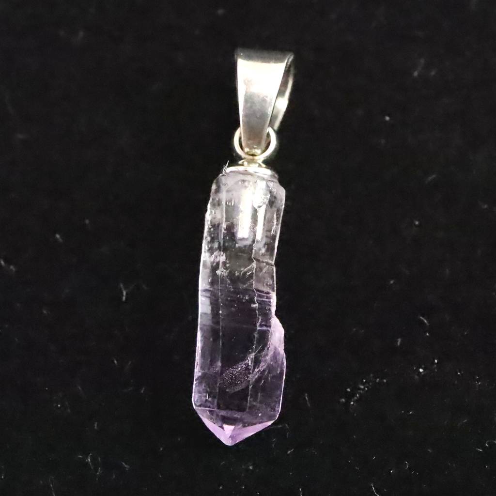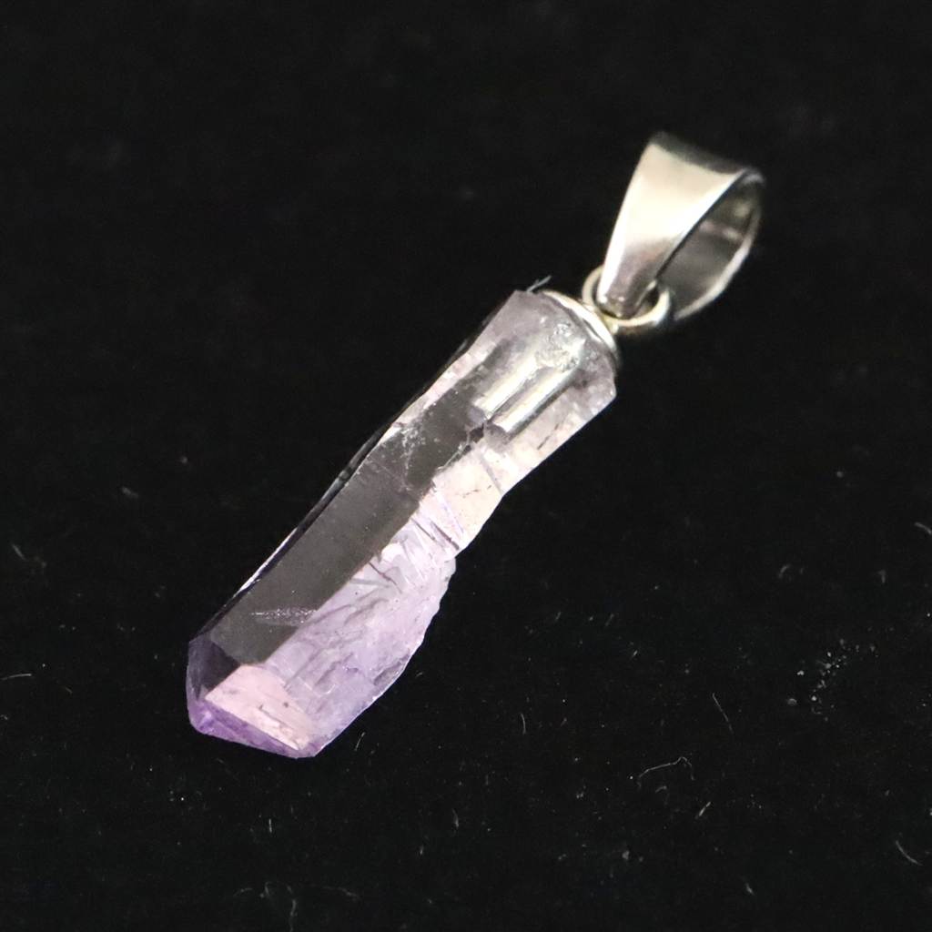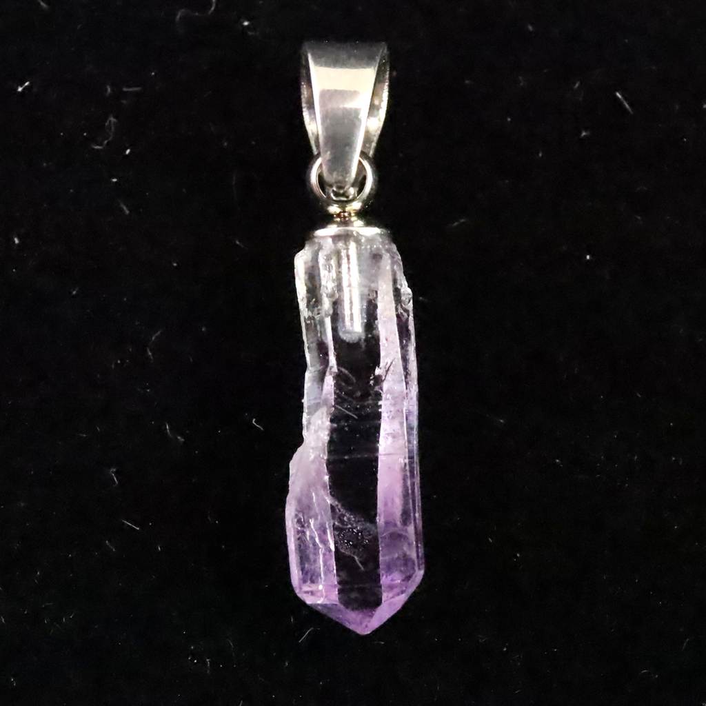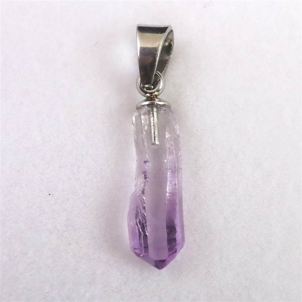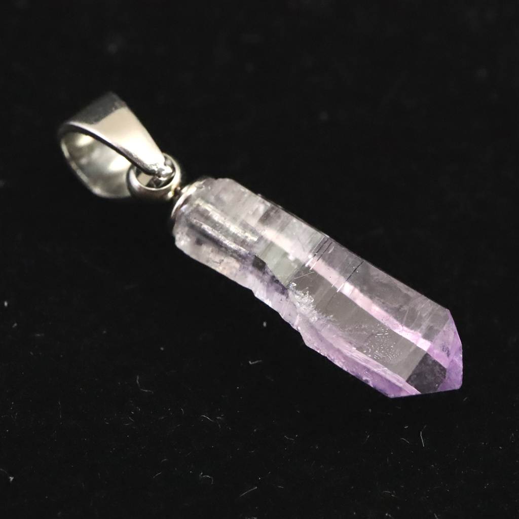◆ メキシコ・ベラクルス州で産出するアメジストは、透明感のある淡いライラック色から鮮やかな紫色を示し、細長い柱状の結晶が母岩に群生する姿で知られます。特に結晶の先端に向けて色が濃くなるゾーニングが美しく、光を受けると澄んだ輝きを放ちます。モース硬度は7で、石英の一種として安定した硬度と光沢を持ち、装飾品や標本としても親しまれています。