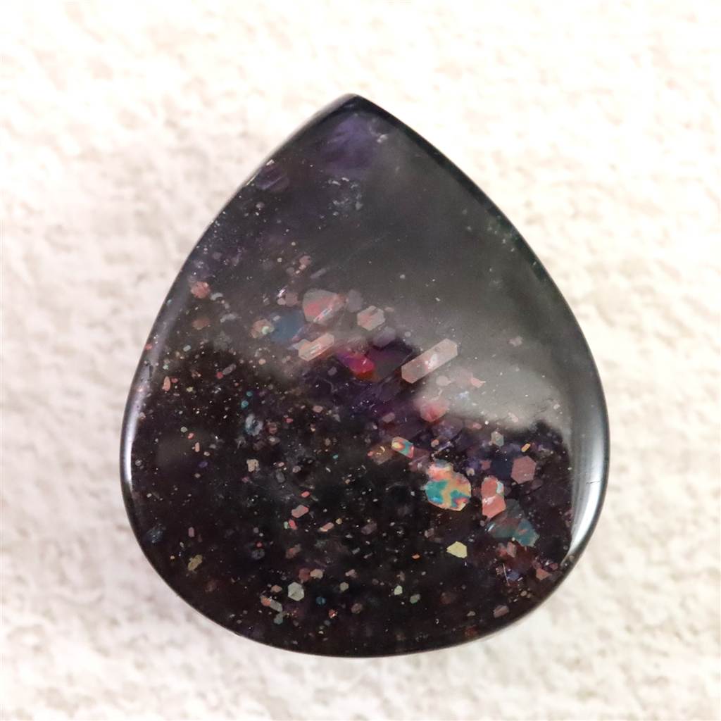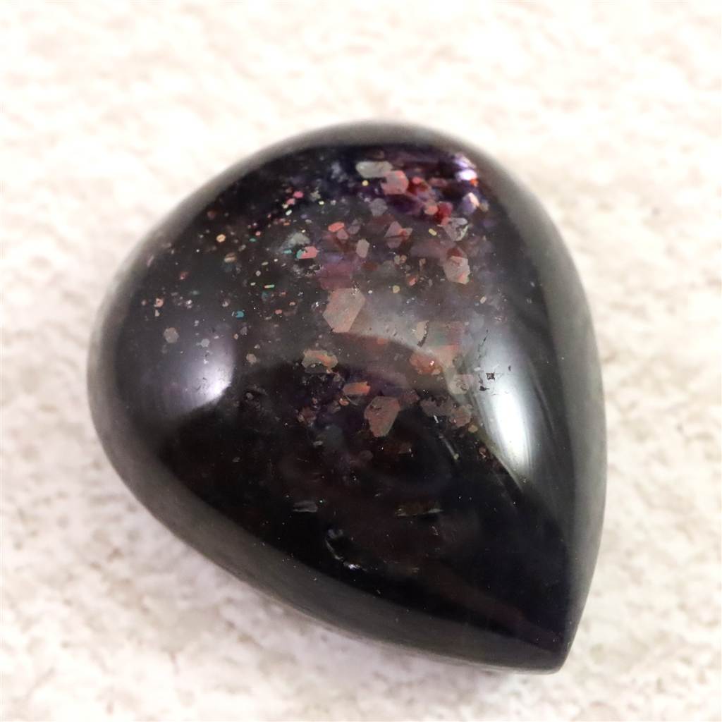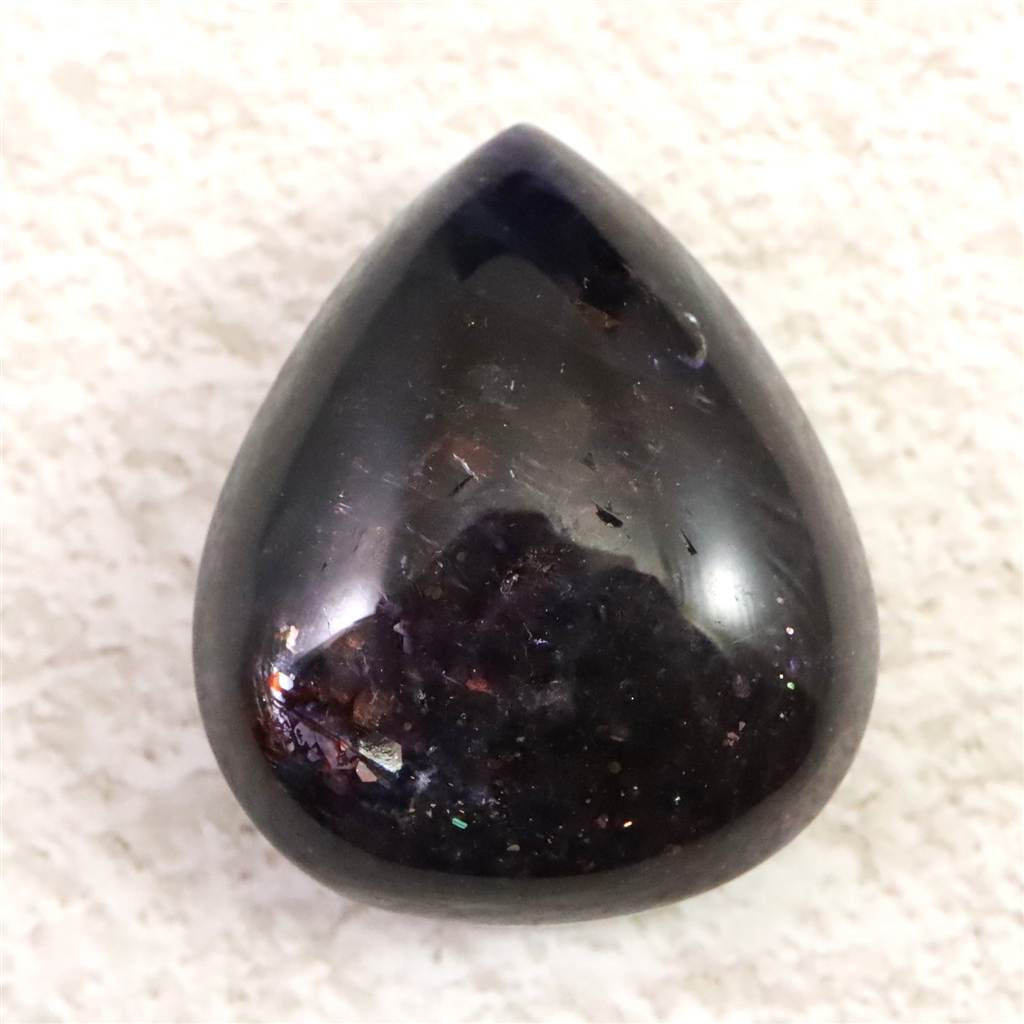 ・商品名 :ブラッドショット アイオライトサンストーン AAAA 26mmドロップ カボション 9.4g (ID:24076)