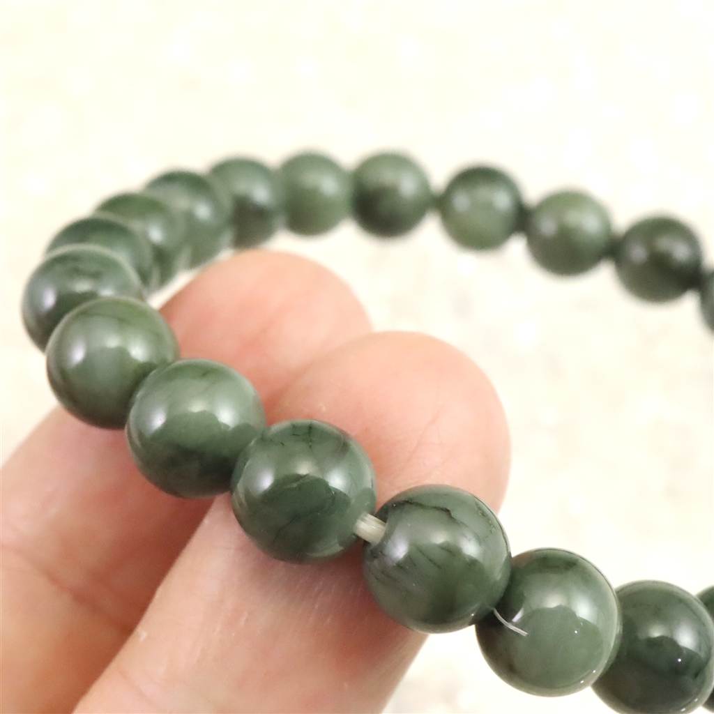 島根県 出雲碧玉 出雲石 8mm玉ブレスレット 証明書付 18.0g (ID:42142)
