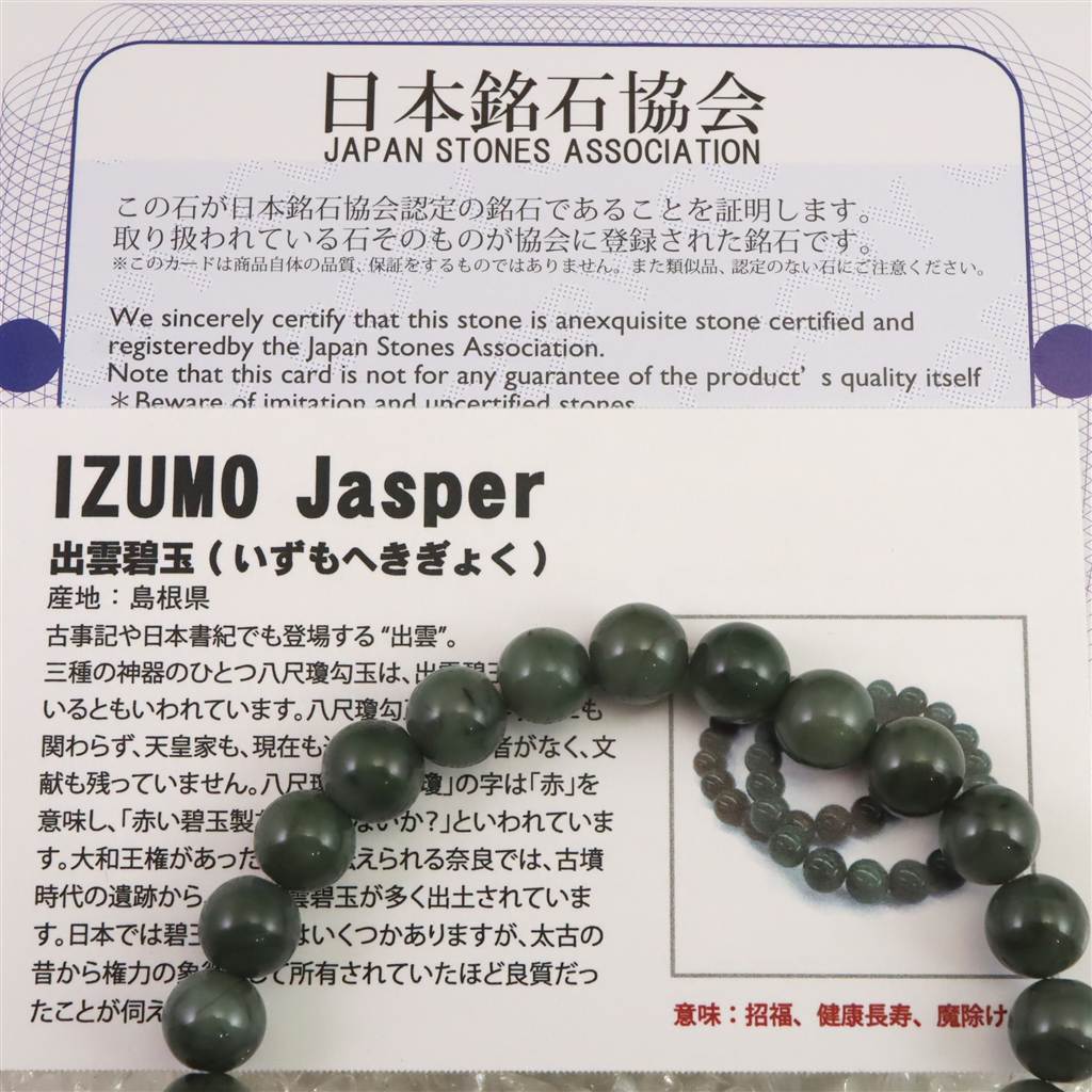 ・商品名 :島根県 出雲碧玉 出雲石 8mm玉ブレスレット 証明書付 18.0g (ID:42142)