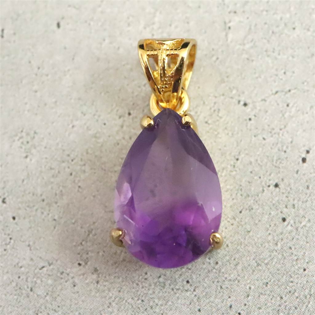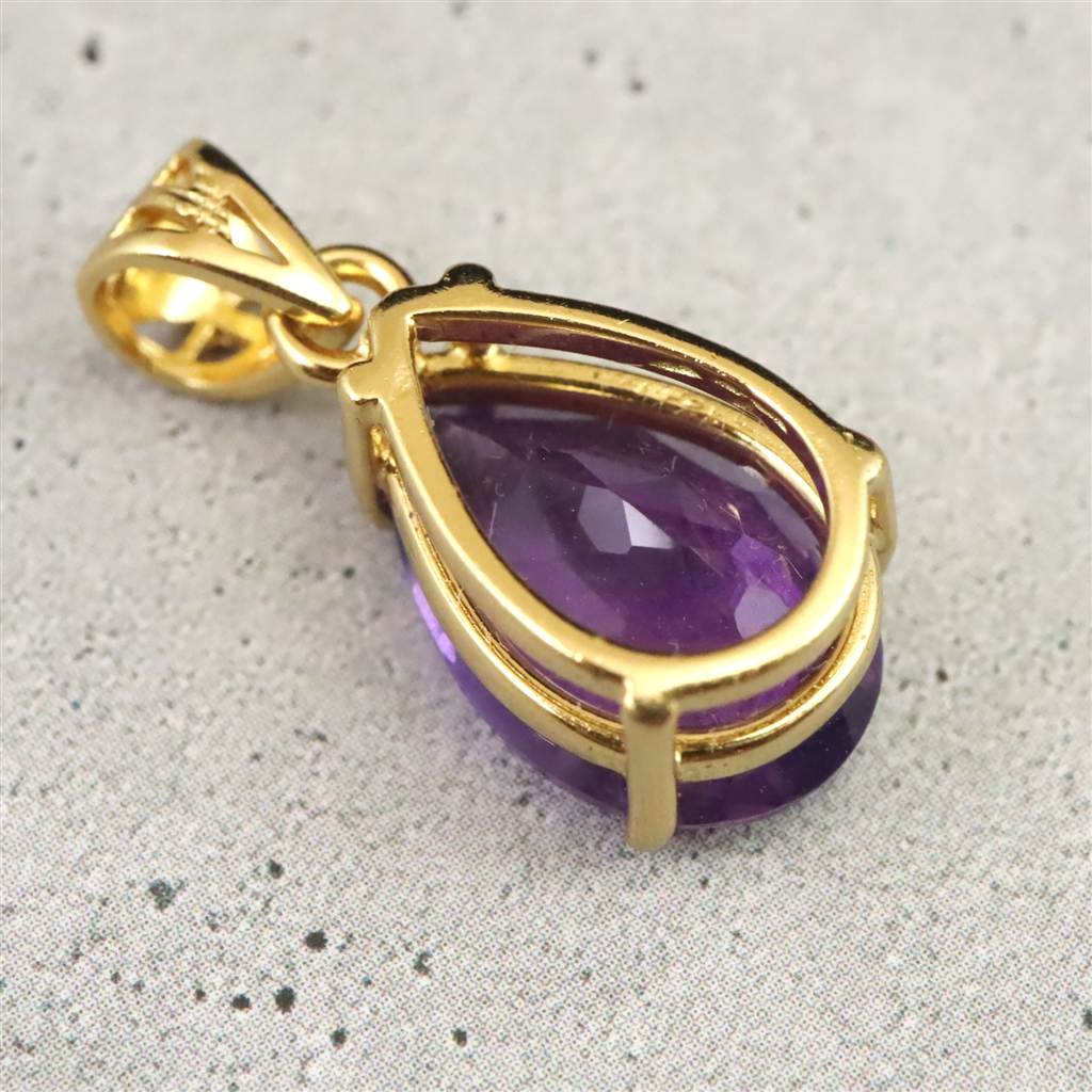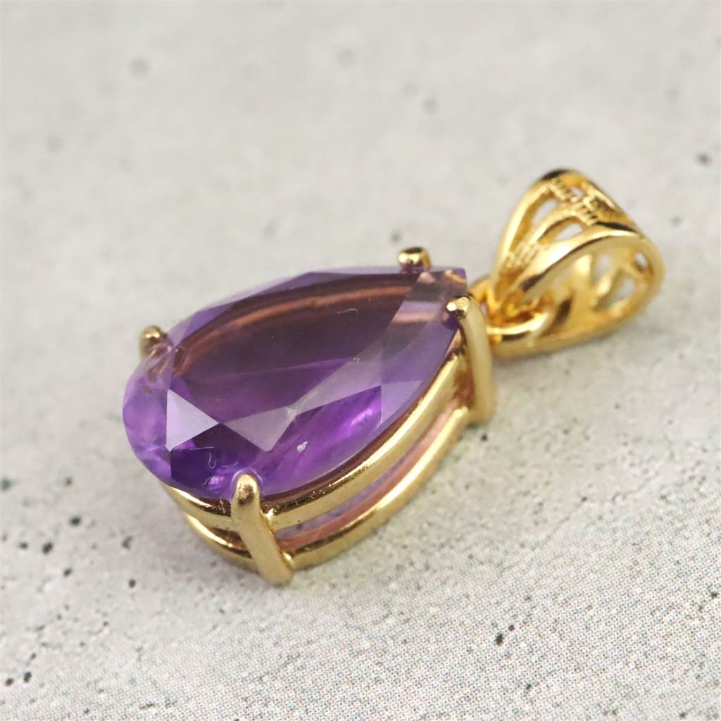 アメジスト 12mmペアシェイプ型 ペンダントトップ 18KGP 1.46g (ID:88946)