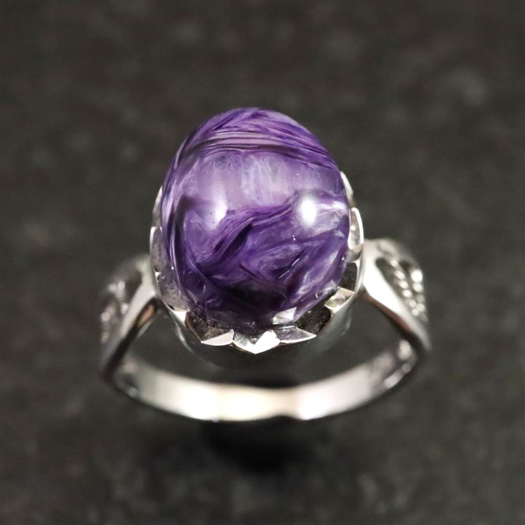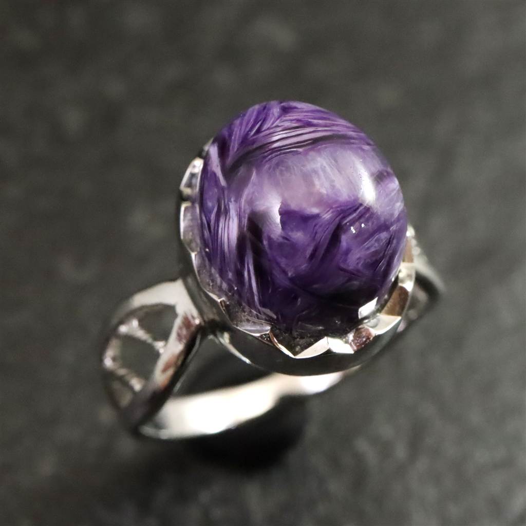 ・商品名 :チャロアイト 12X10mmオーバル リング 15号 3.7g (ID:11791)