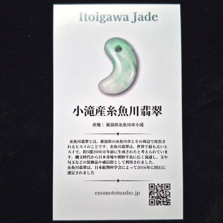 糸魚川翡翠 小滝産 33mm 勾玉 ブルー ディレクトリーカード付 16.54g (ID:41959)