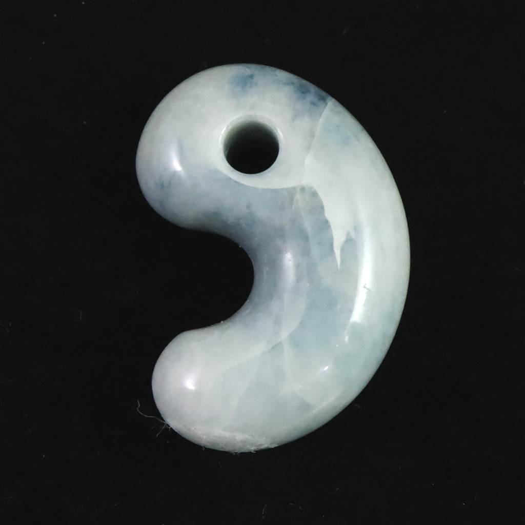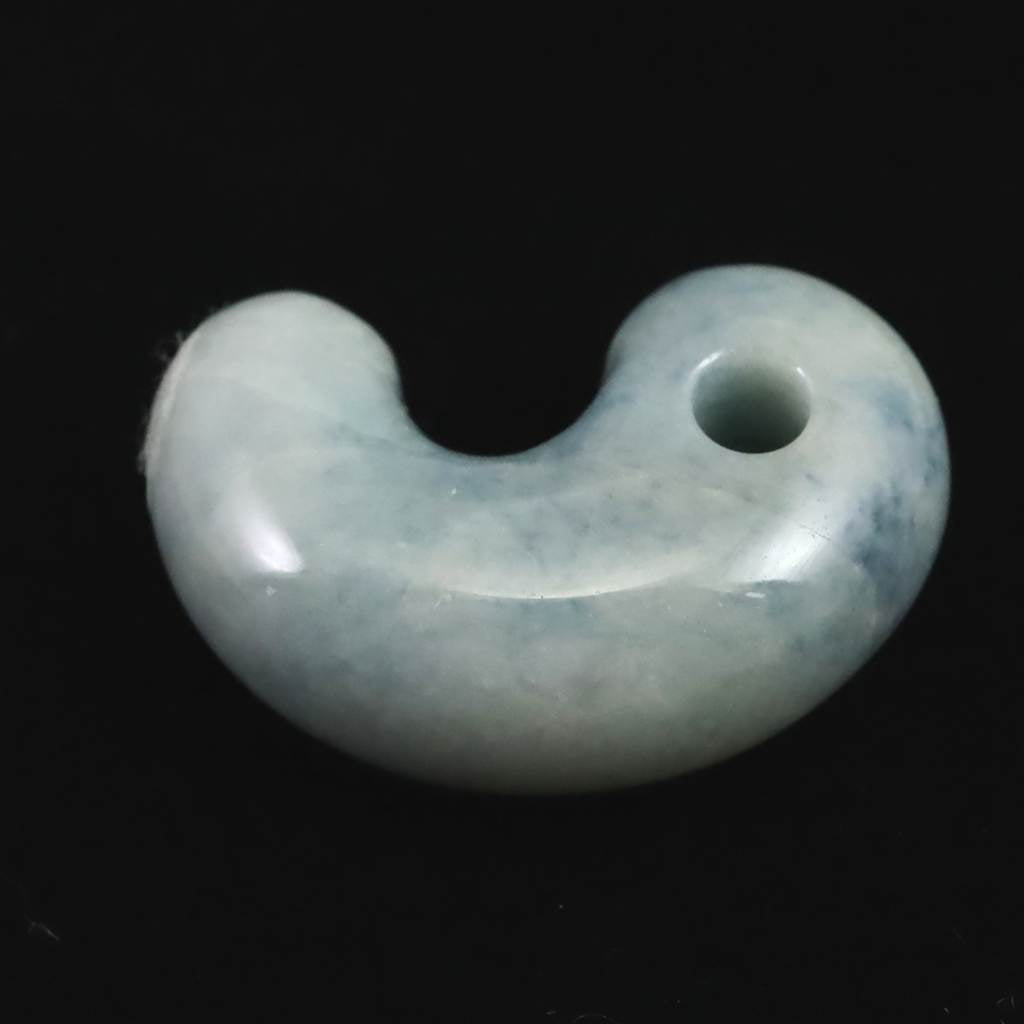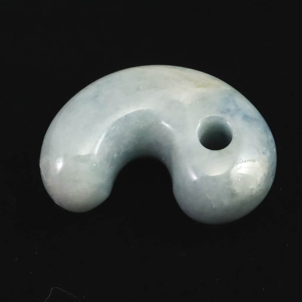 ◆ 小滝コン沢産の希少原石を使用して作られた勾玉です。勾玉(まが玉)の形に加工した、糸魚川産のブルーの翡翠です。熟練職人の手によって、厳選したよい石の中の、更によい部分のみを削り出した勾玉です。