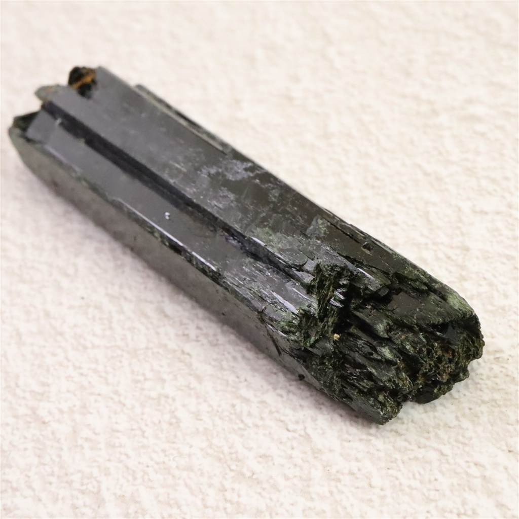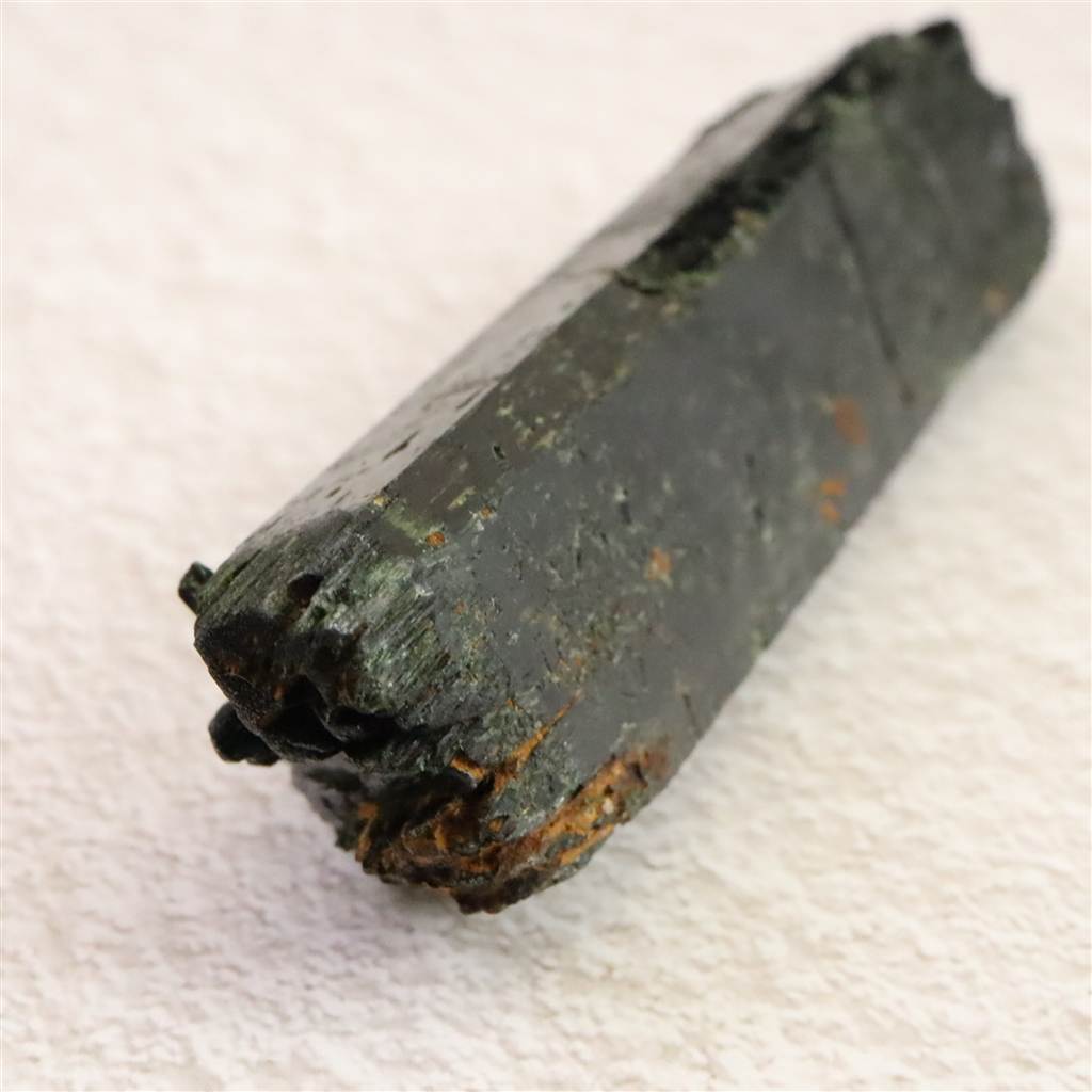 ◆ エジリンは鉄を多く含む輝石グループの鉱物で、深い黒緑色から黒色を呈し、柱状の結晶を形成するのが特徴です。マラウィ産のものは透明感を伴う深緑色で、結晶の端に光を受けると金属的な光沢を放ち、美しいコントラストを見せます。モース硬度は約6で、比較的堅牢な石です。鉱物学的にはアルカリ岩やペグマタイトに産出し、結晶は細長くシャープな形を示すことが多く、コレクションとしても魅力的です。霊的な観点では、心を安定させ集中力を高める石といわれ、内面的な強さを育むサポートをすると言われています。