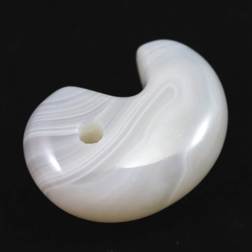 ◆ メノウ(瑪瑙・アゲート)は、石英の微細な結晶が集合したカルセドニーの一種で、縞模様や半透明の美しい質感を特徴とします。北海道瀬棚郡今金町花石で産出した瑪瑙は古くから上質とされ、明治時代には工芸品の素材として盛んに用いられました。しかしその後、ブラジル産の流通により採掘は次第に衰え、現在は国の管理下で採掘が禁止されています。そのため、花石産の瑪瑙は現在では非常に希少な存在となっています。