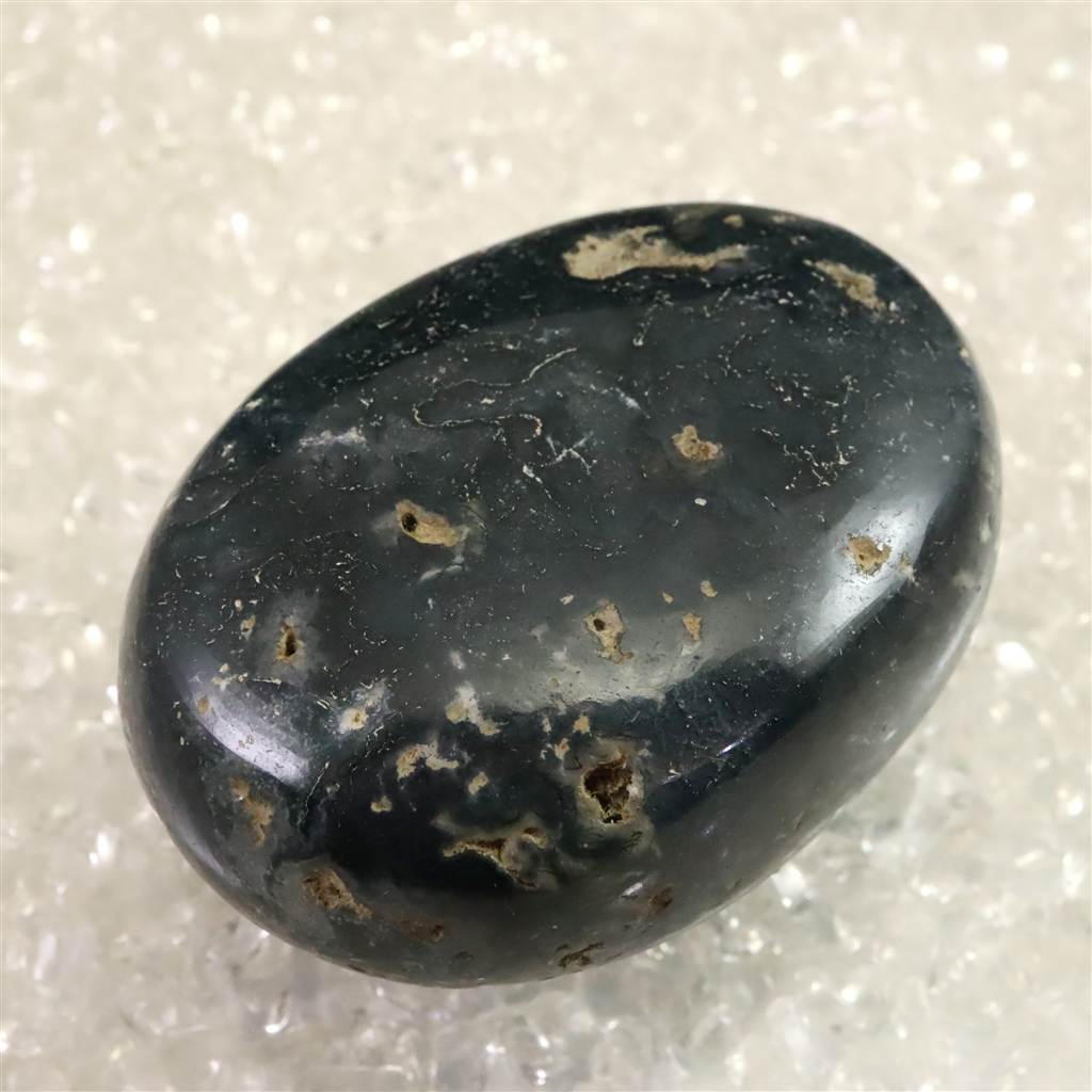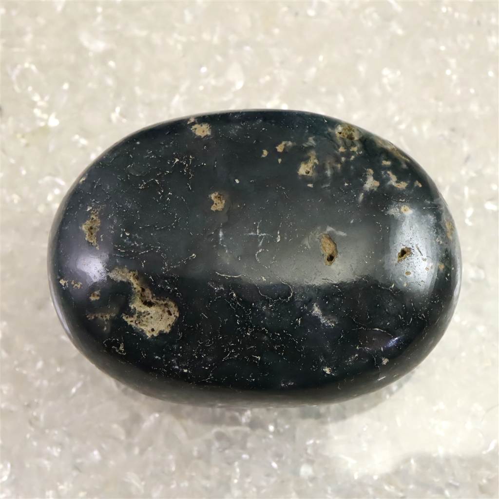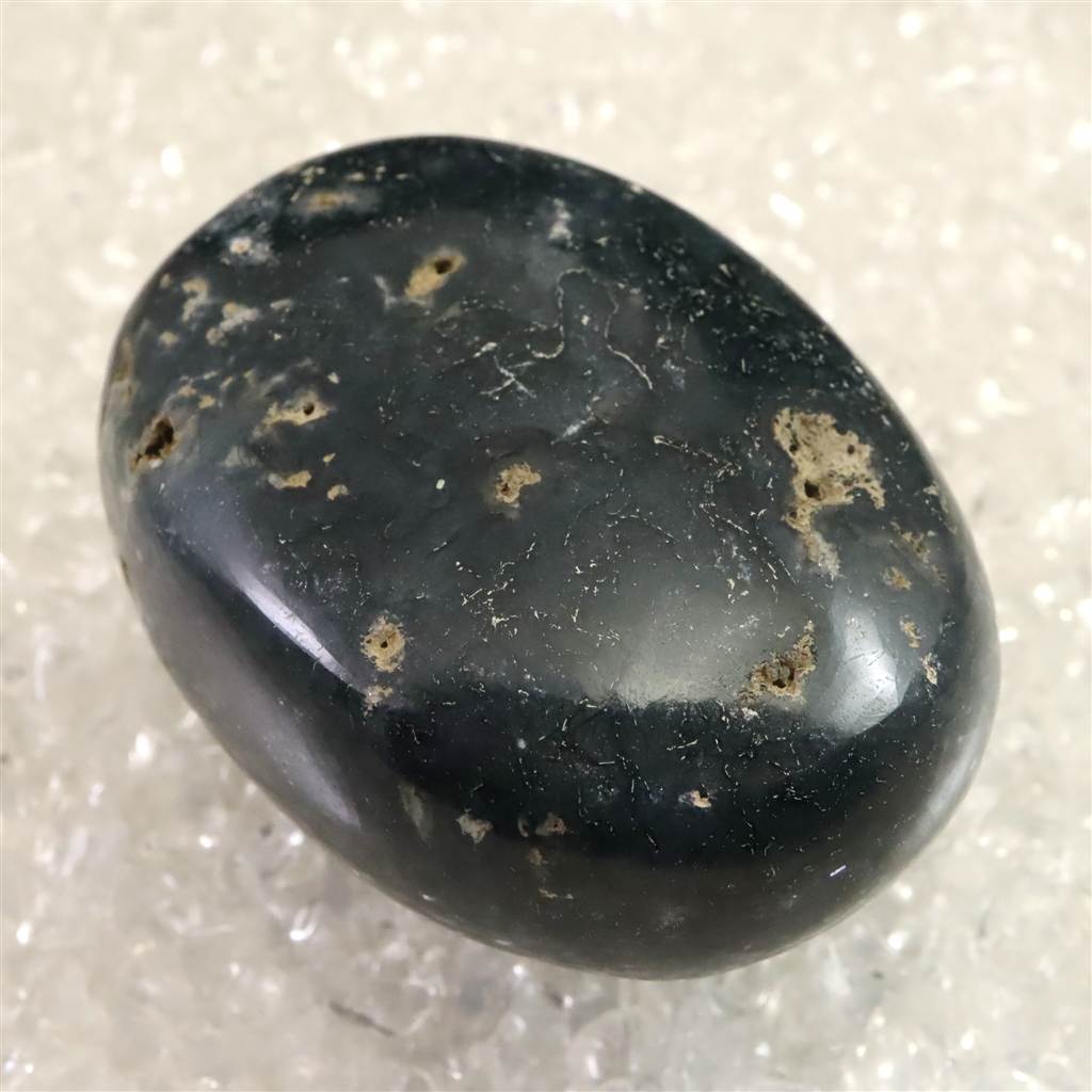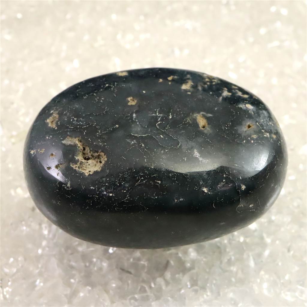 ◆ インド産モスアゲートは、カルセドニーの一種で、透明から乳白色の地にマンガンや鉄の酸化物が樹枝状に入り込み、苔のような模様を生み出すことからその名が付けられています。縞模様の乏しいカルセドニーでありながら、自然が描いた絵画のような景観を石の内部に宿す点が魅力です。インドではデカントラップス周辺、特にマハーラーシュトラ州アウランガーバードなどから産出が知られています。大地や自然とのつながりを象徴する石とされ、持つ人に安定感や安心感をもたらすといわれます。また、心を穏やかに整え、忍耐や調和を育む助けとなると伝えられてきました。鉱物学的な特性とともに、内包物が織りなす模様や精神的象徴性をあわせて楽しめる石です。