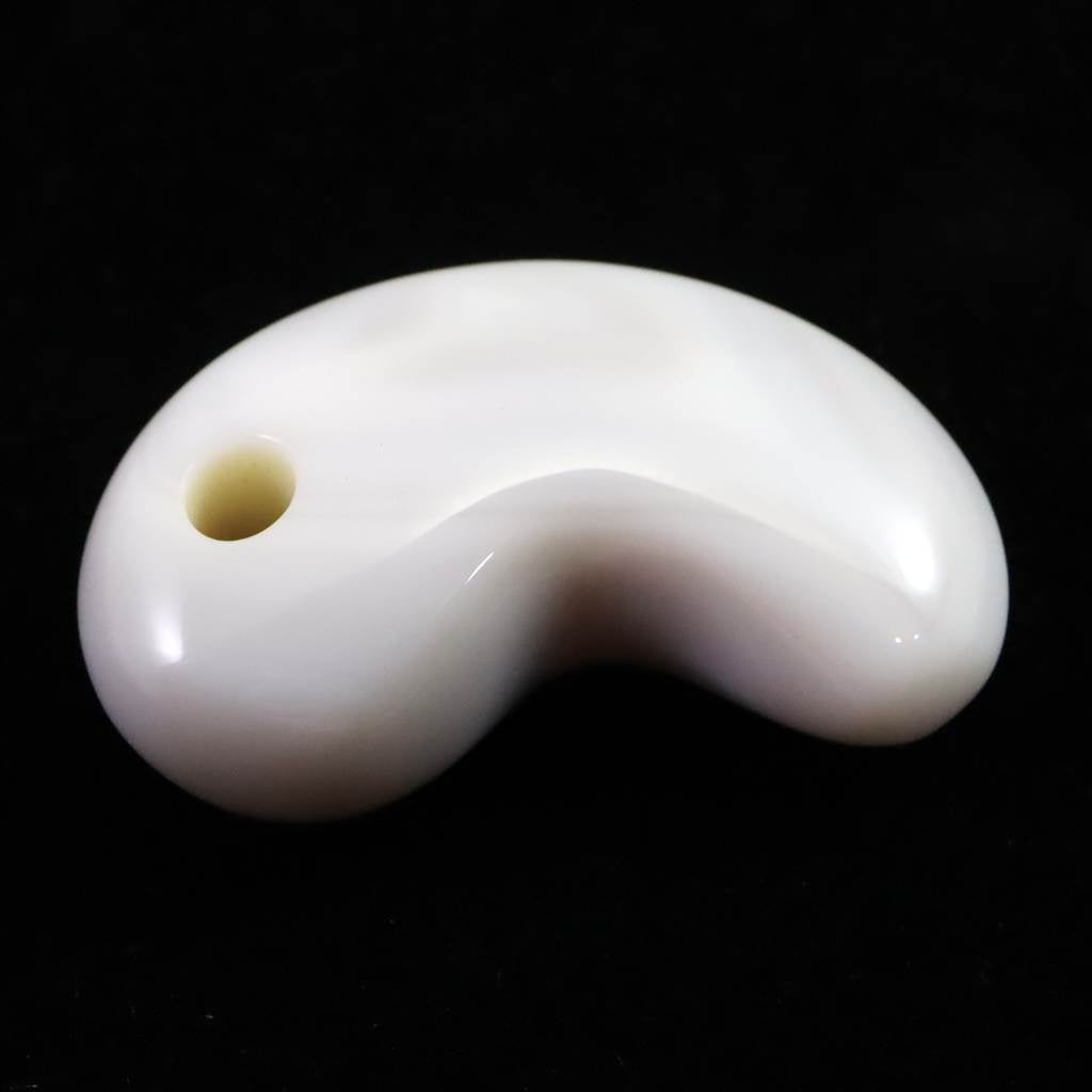 ◆ メノウ(瑪瑙・アゲート)は、石英の微細な結晶が集合したカルセドニーの一種で、縞模様や半透明の美しい質感を特徴とします。北海道瀬棚郡今金町花石で産出した瑪瑙は古くから上質とされ、明治時代には工芸品の素材として盛んに用いられました。しかしその後、ブラジル産の流通により採掘は次第に衰え、現在は国の管理下で採掘が禁止されています。そのため、花石産の瑪瑙は現在では非常に希少な存在となっています。