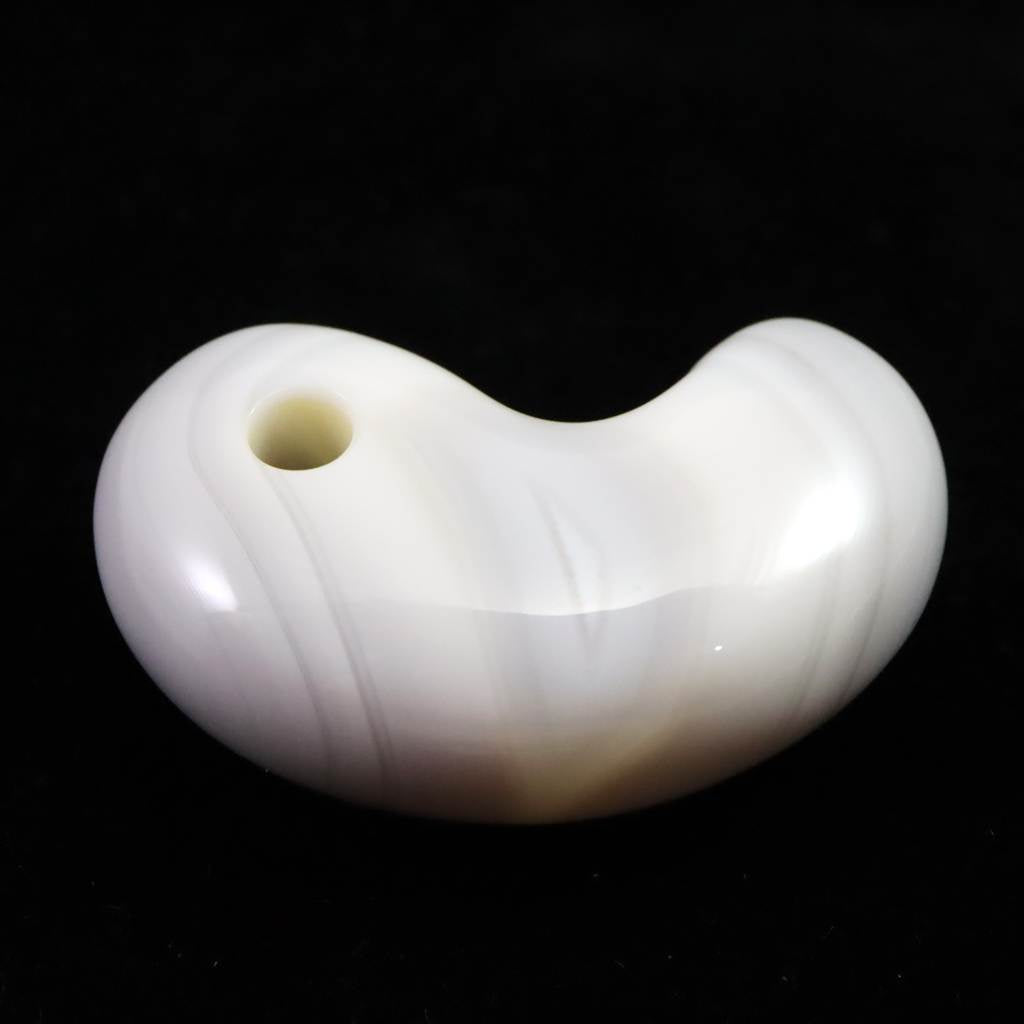 ◆ メノウ(瑪瑙・アゲート)は、石英の微細な結晶が集合したカルセドニーの一種で、縞模様や半透明の美しい質感を特徴とします。北海道瀬棚郡今金町花石で産出した瑪瑙は古くから上質とされ、明治時代には工芸品の素材として盛んに用いられました。しかしその後、ブラジル産の流通により採掘は次第に衰え、現在は国の管理下で採掘が禁止されています。そのため、花石産の瑪瑙は現在では非常に希少な存在となっています。