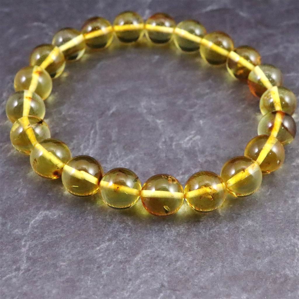天然琥珀 バルティックアンバー 虫入り アンバー 9.5mm玉ブレスレット 10.2g (ID:39047)