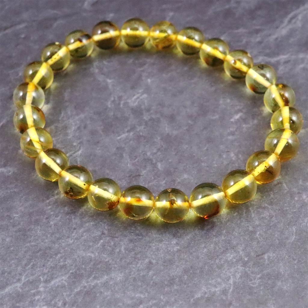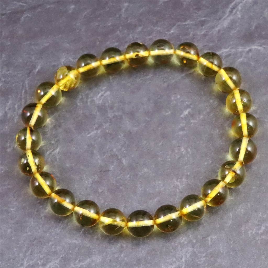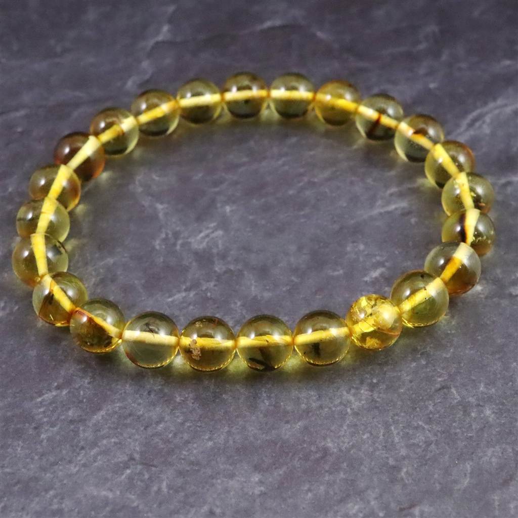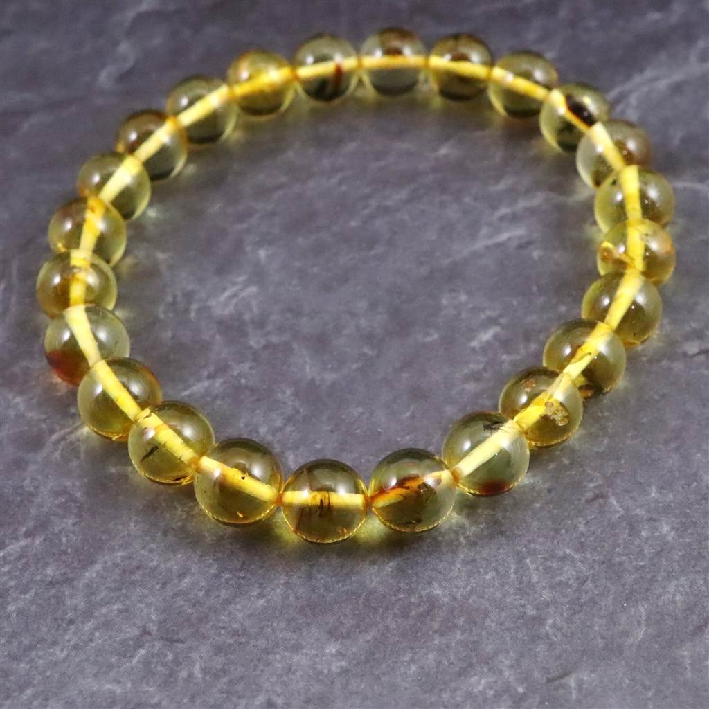 天然琥珀 バルティックアンバー 虫入り アンバー 8mm玉ブレスレット 7.1g (ID:62356)