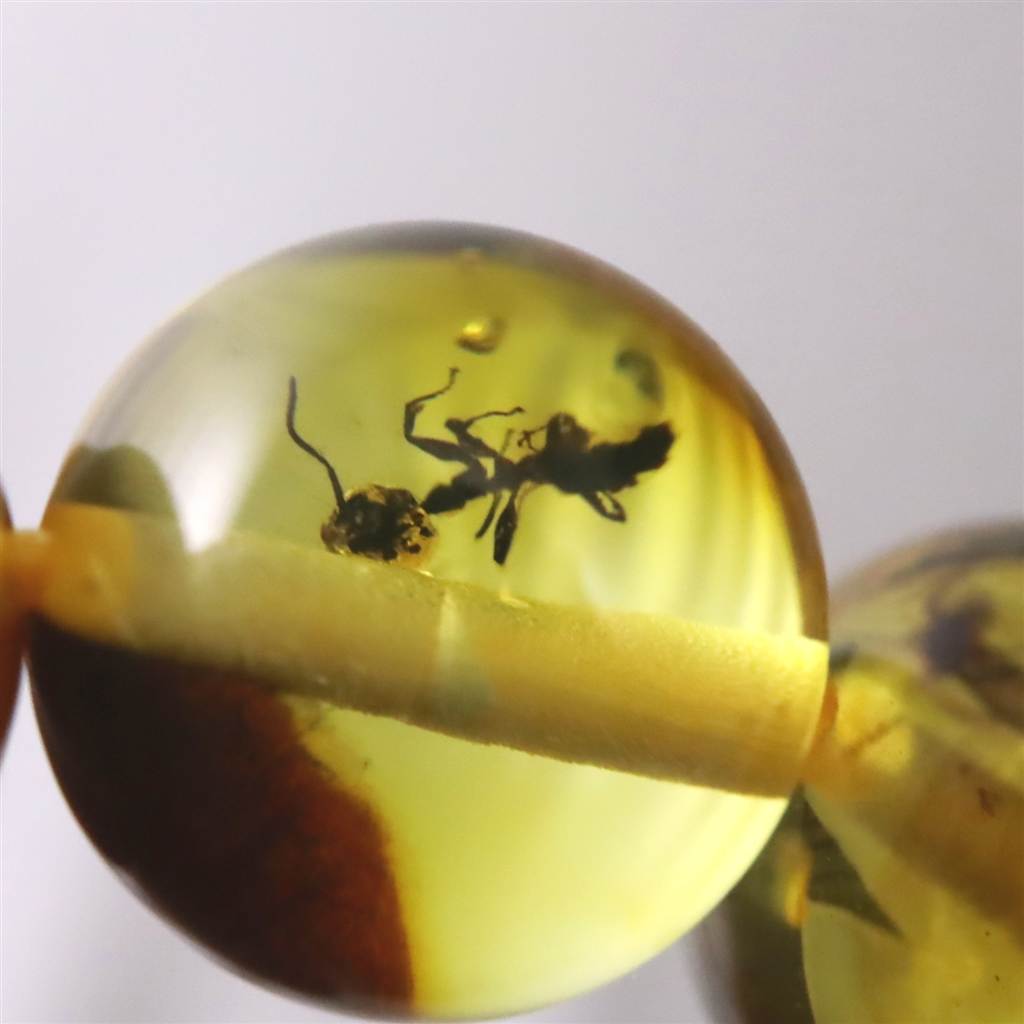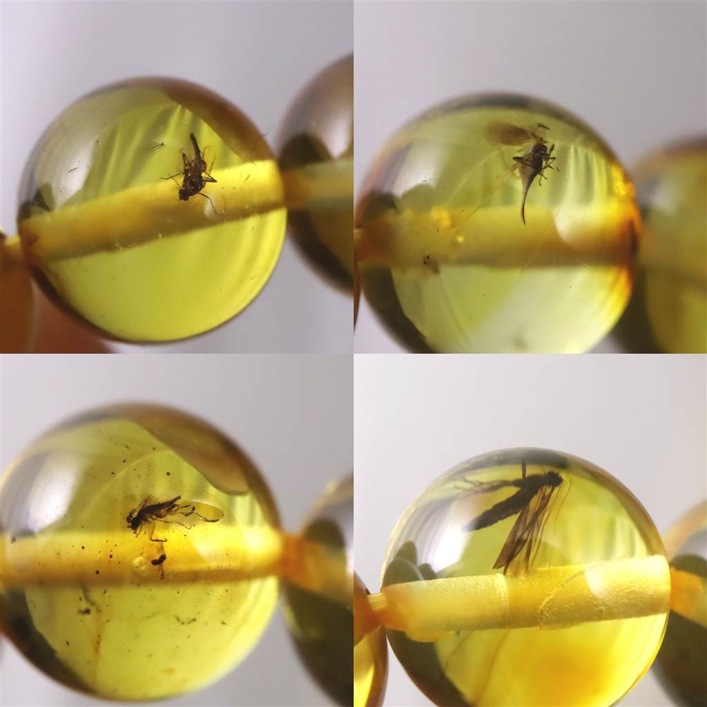 ◆ 本商品写真は現物のものです。写真の商品をお届けします。こちらの商品はブラウンの天然アンバー、天然琥珀です。 天然琥珀の粉を溶かして固めた加工入アンバー(プレストアンバー)ではありません。ほとんどのビーズにサイズ・種類も様々な昆虫が閉じ込められた貴重なブレスレットです。