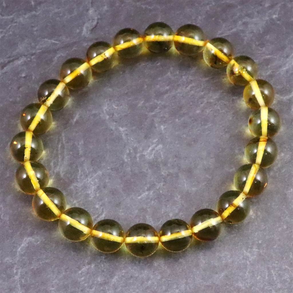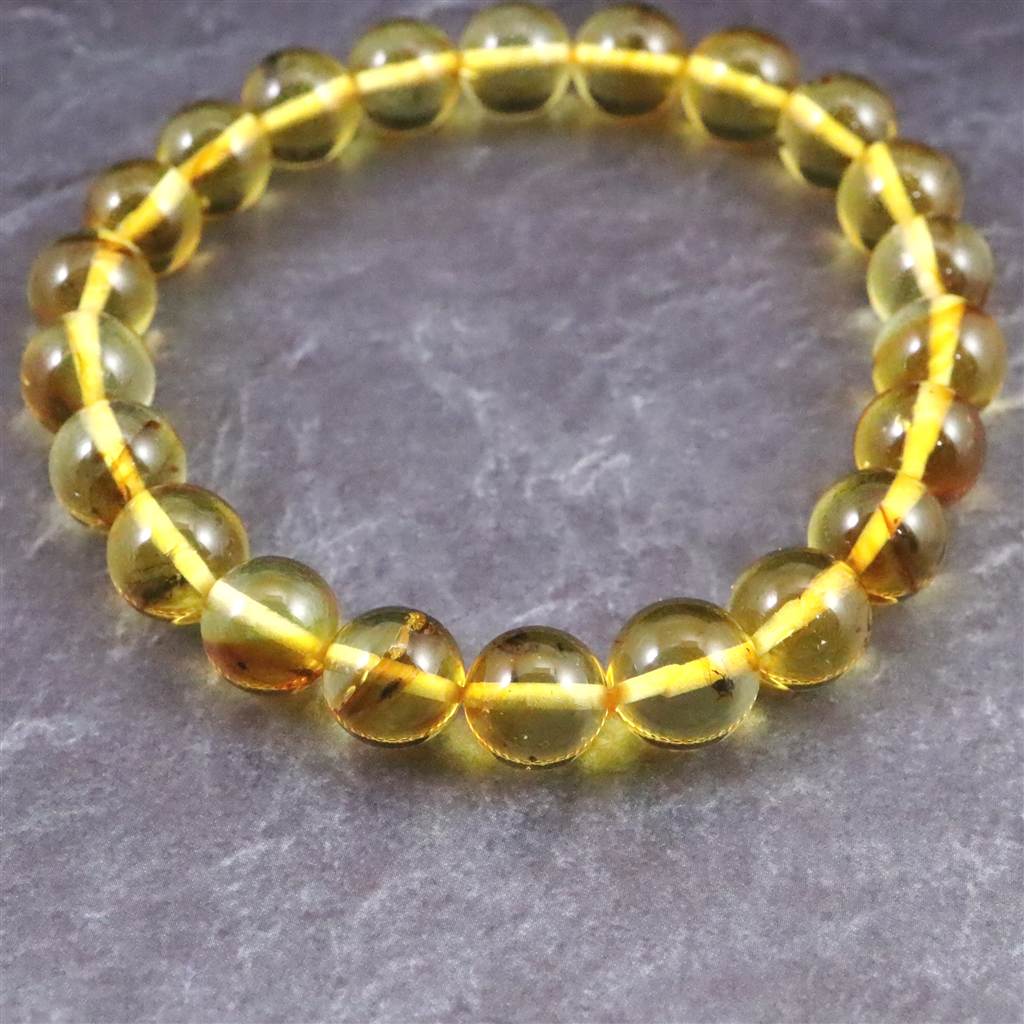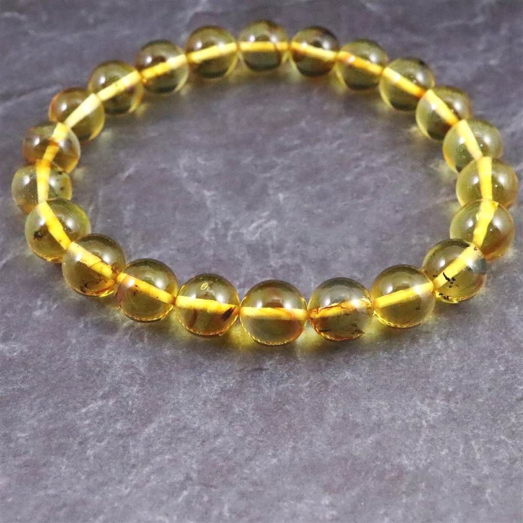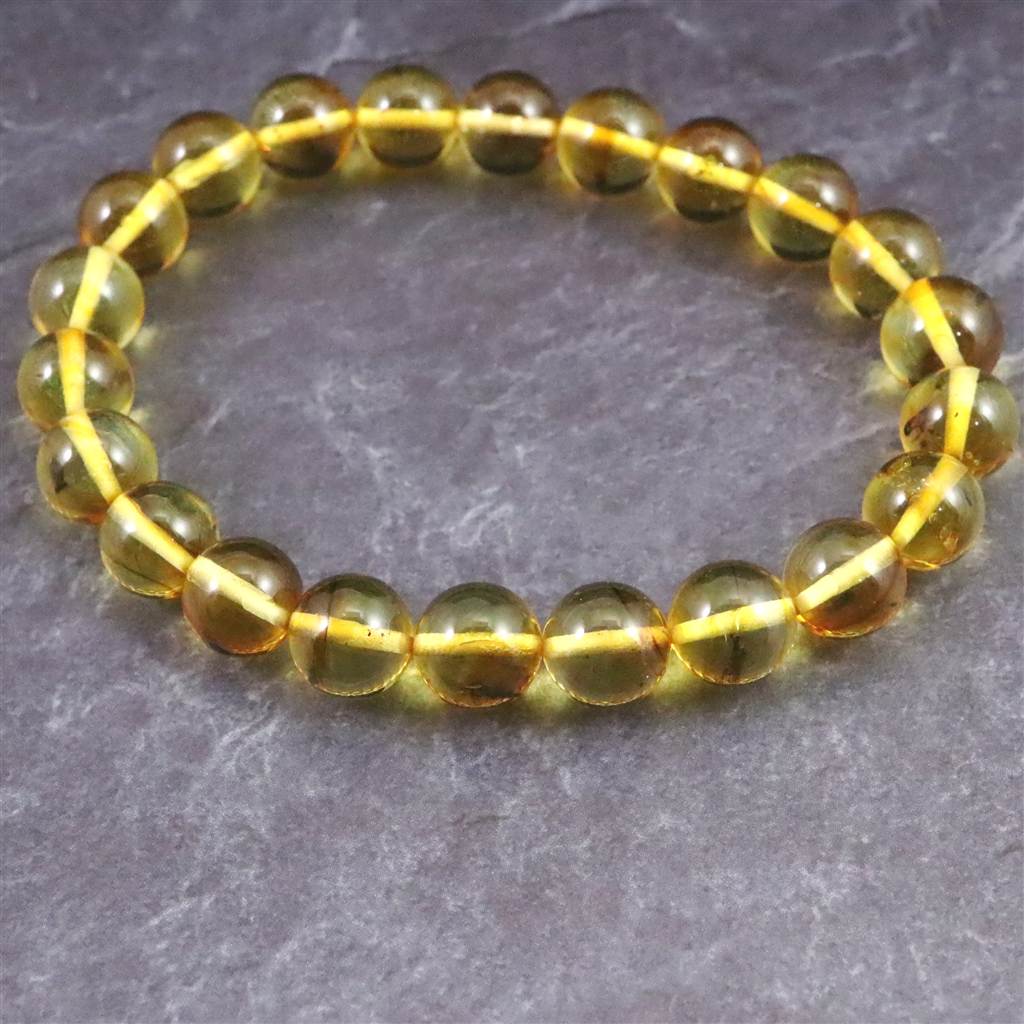 天然琥珀 バルティックアンバー 虫入り アンバー 8.5mm玉ブレスレット 8.2g (ID:82243)