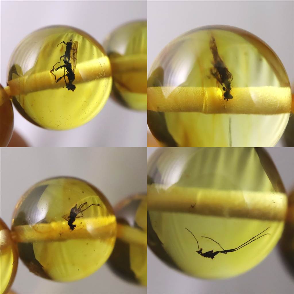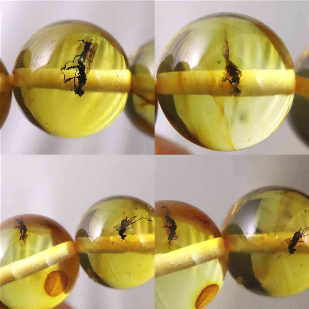 ◆ 本商品写真は現物のものです。写真の商品をお届けします。こちらの商品はブラウンの天然アンバー、天然琥珀です。 天然琥珀の粉を溶かして固めた加工入アンバー(プレストアンバー)ではありません。ほとんどのビーズにサイズ・種類も様々な昆虫が閉じ込められた貴重なブレスレットです。