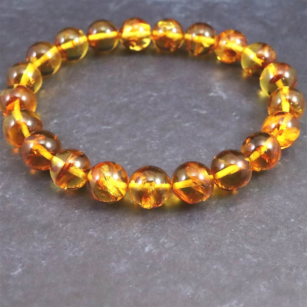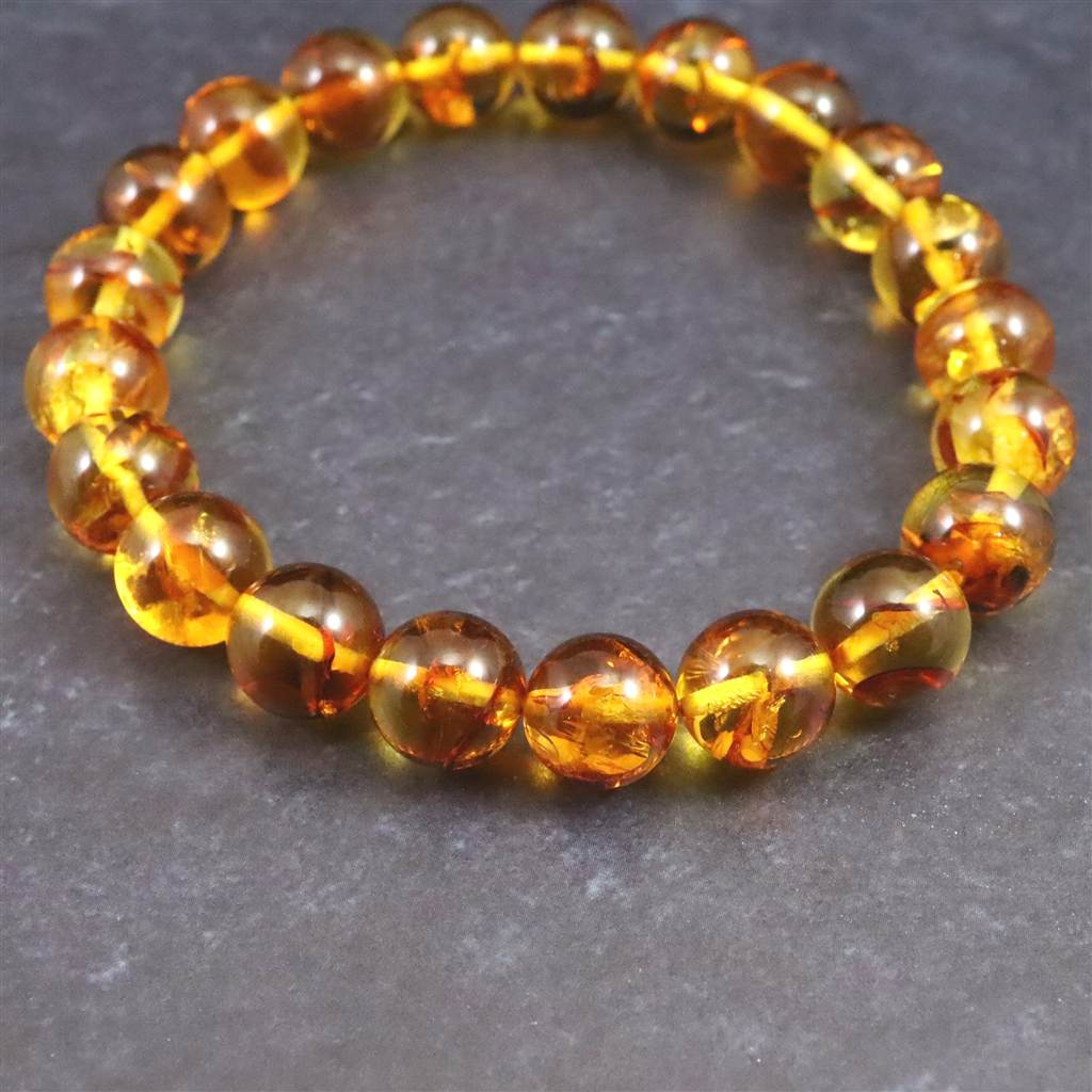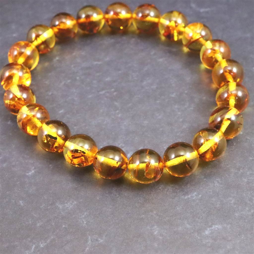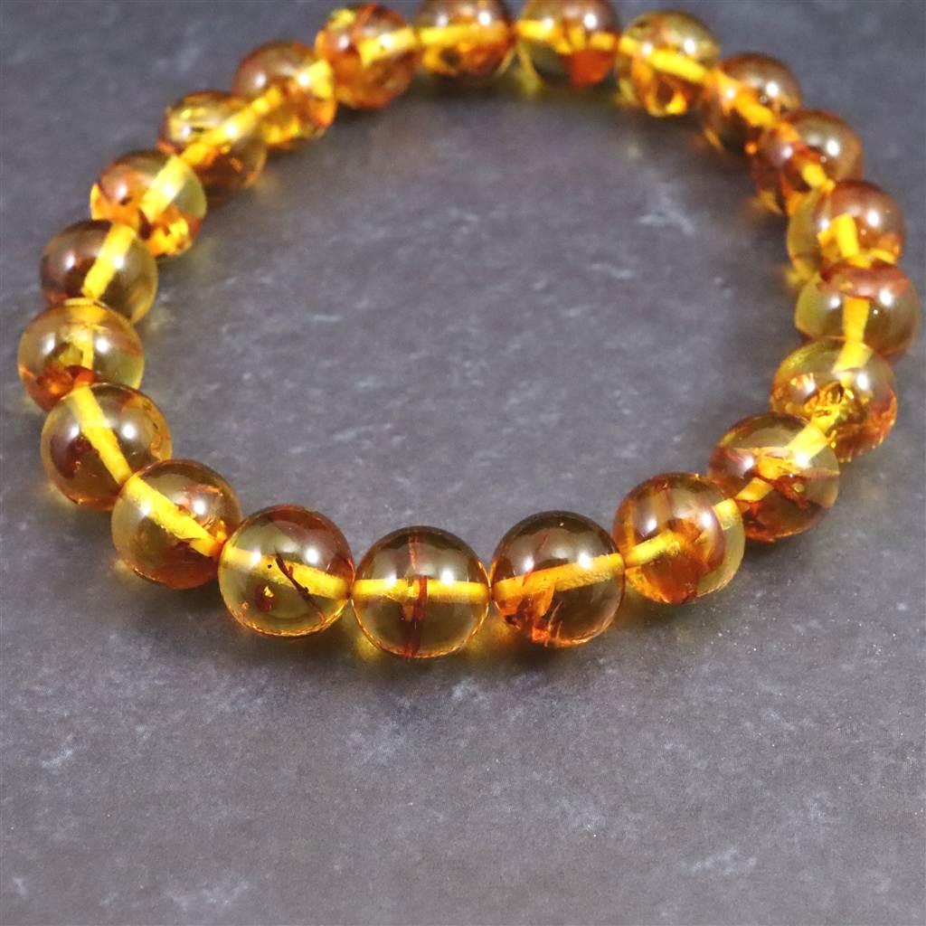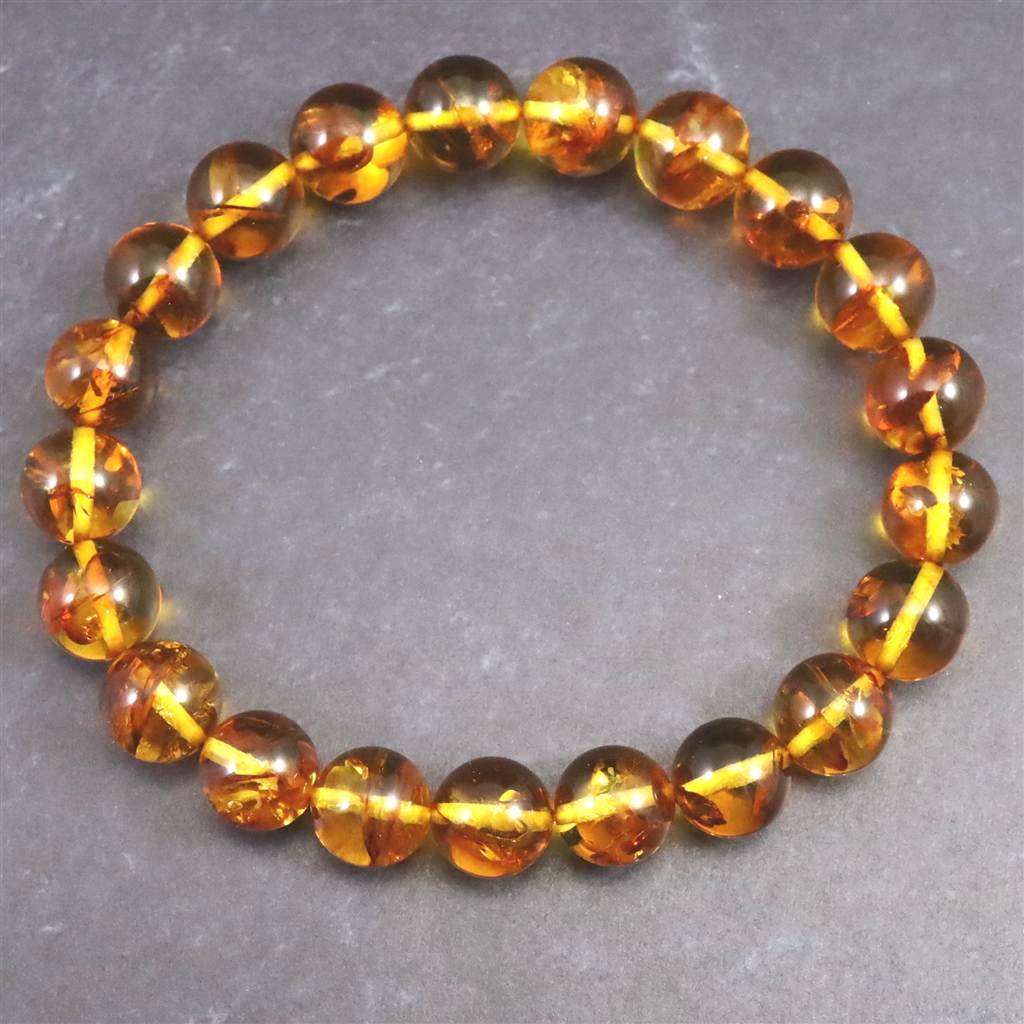 天然琥珀 バルティックアンバー 9mm玉ブレスレット 9.4g (ID:20491)