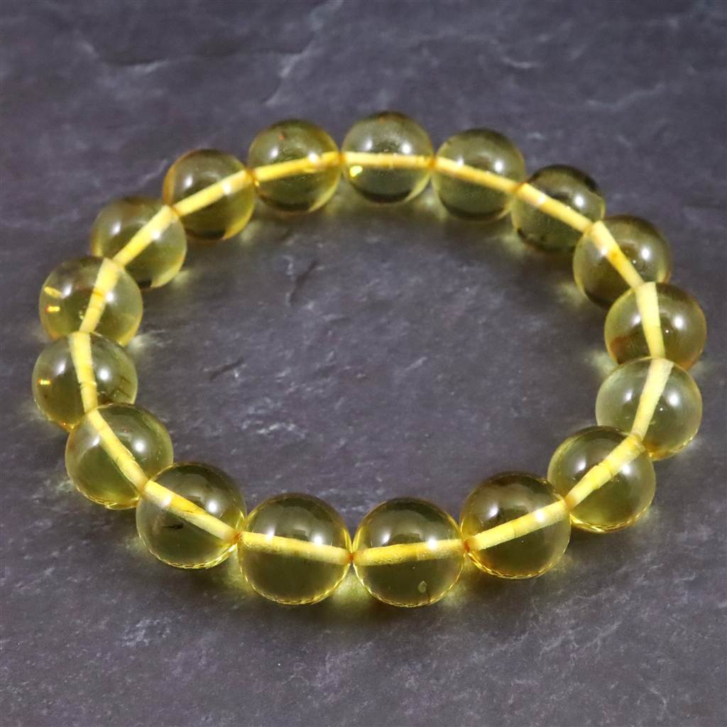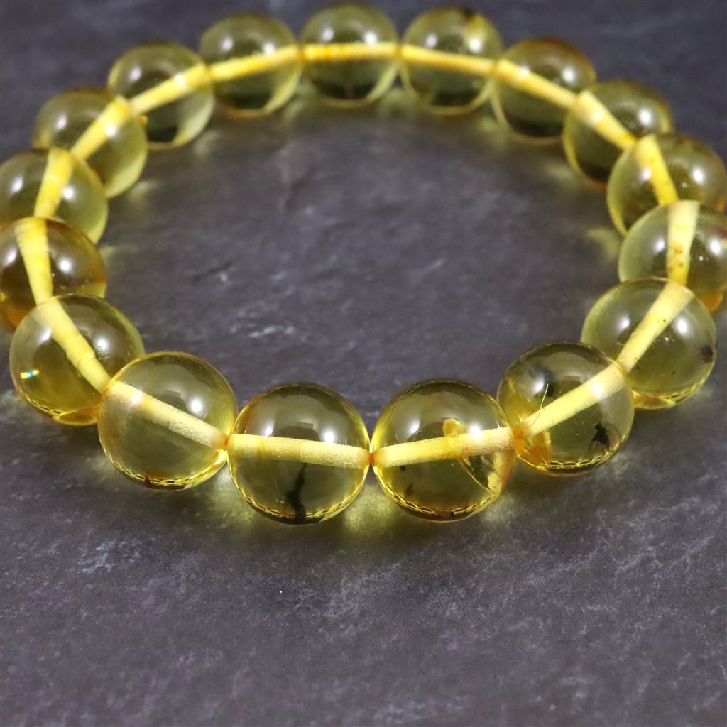 天然琥珀 バルティックアンバー 虫入り アンバー 12mm玉ブレスレット 16.75g (ID:49411)