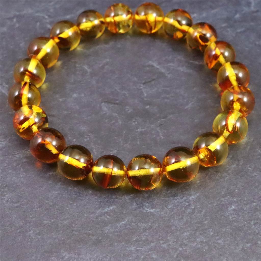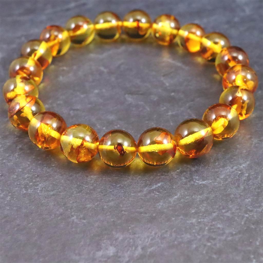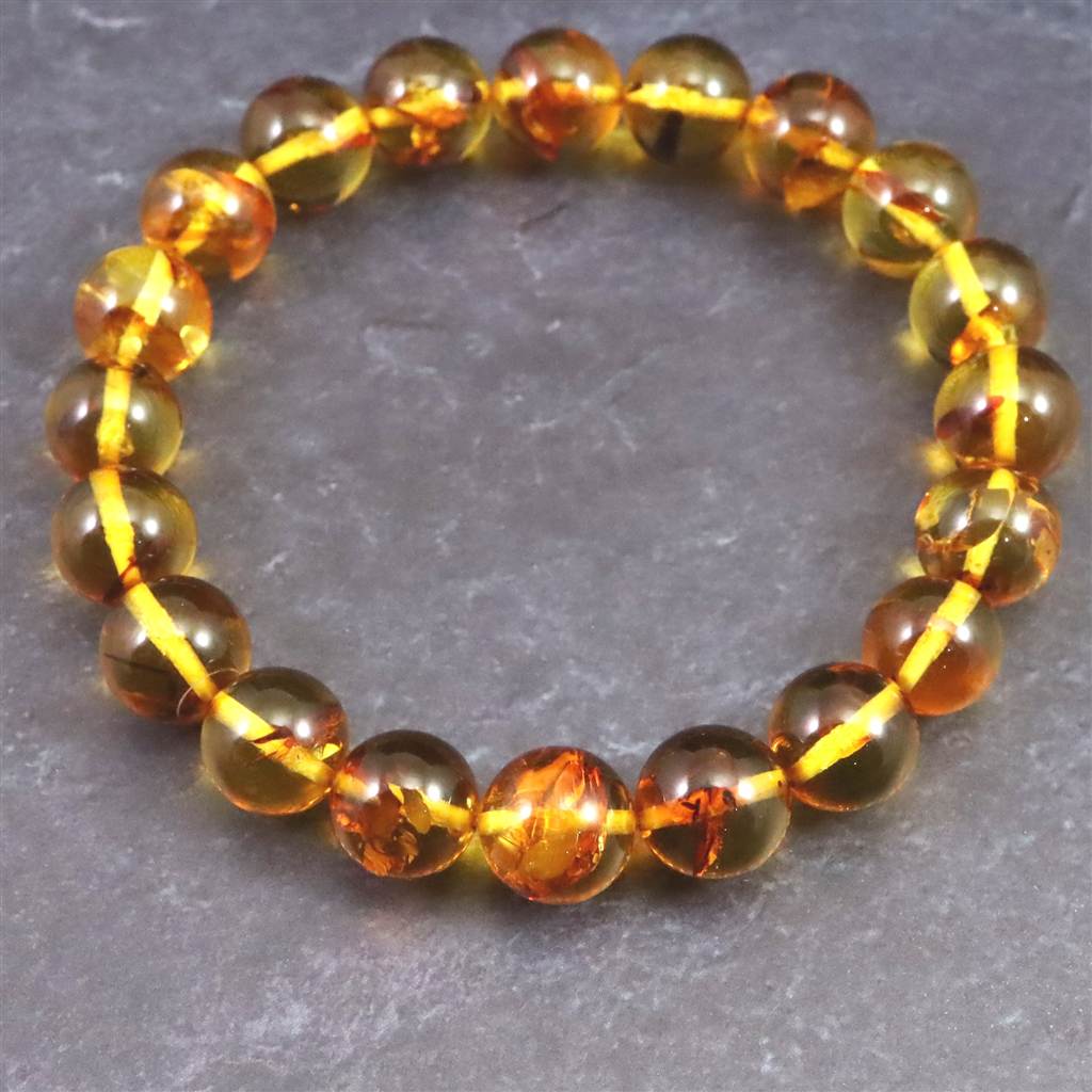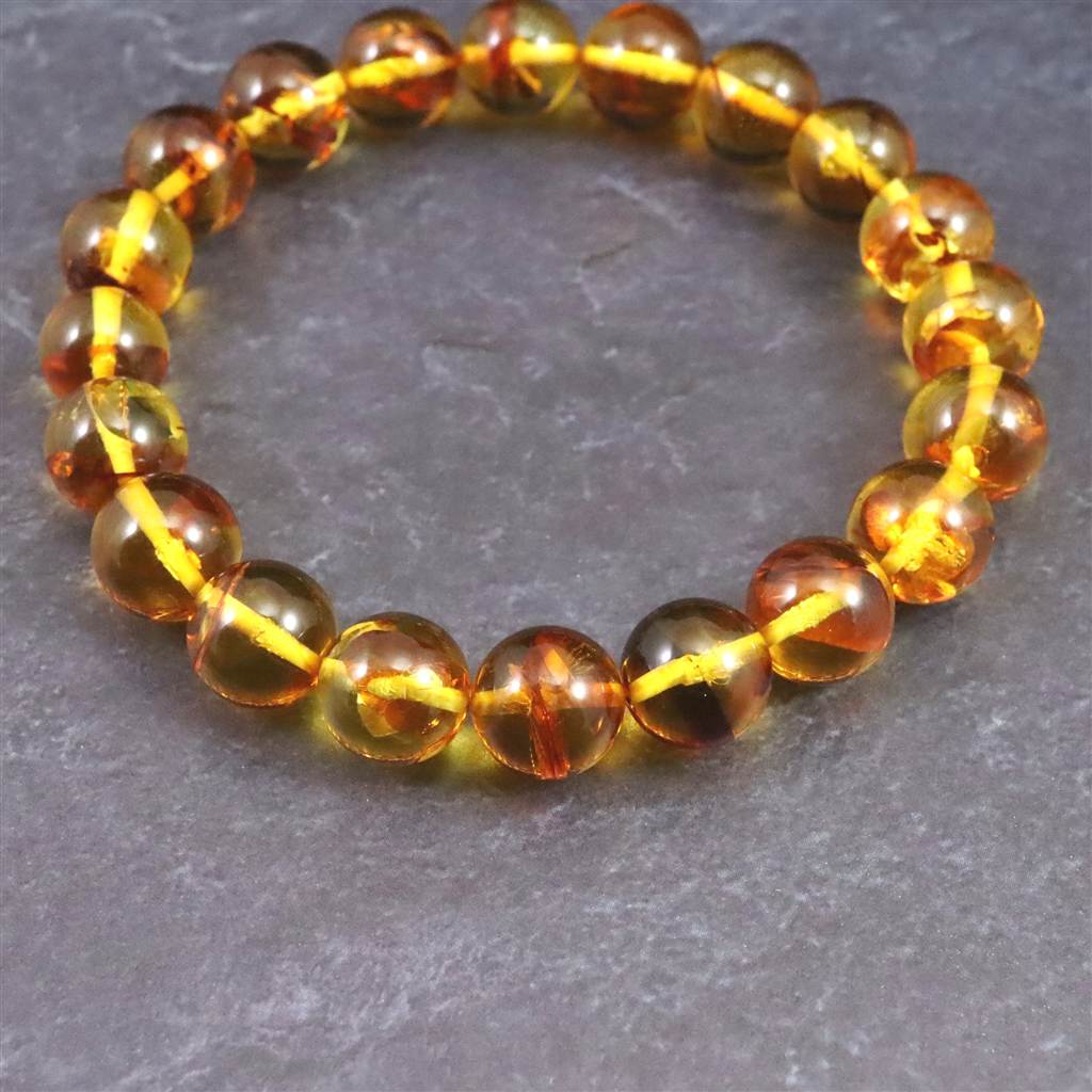 天然琥珀 バルティックアンバー 9.5mm玉ブレスレット 9.9g (ID:84202)