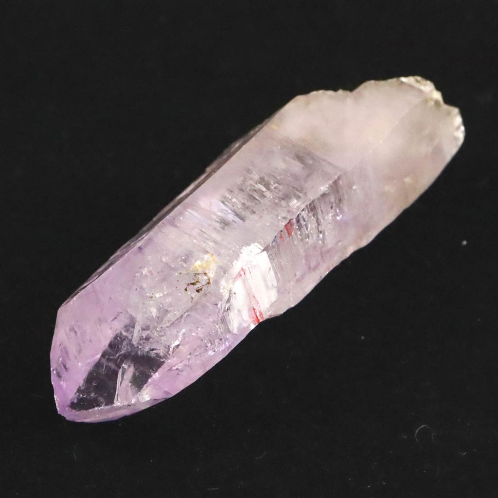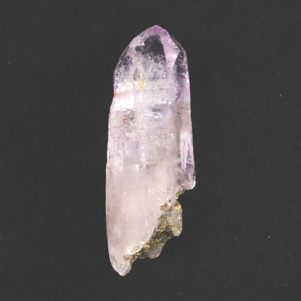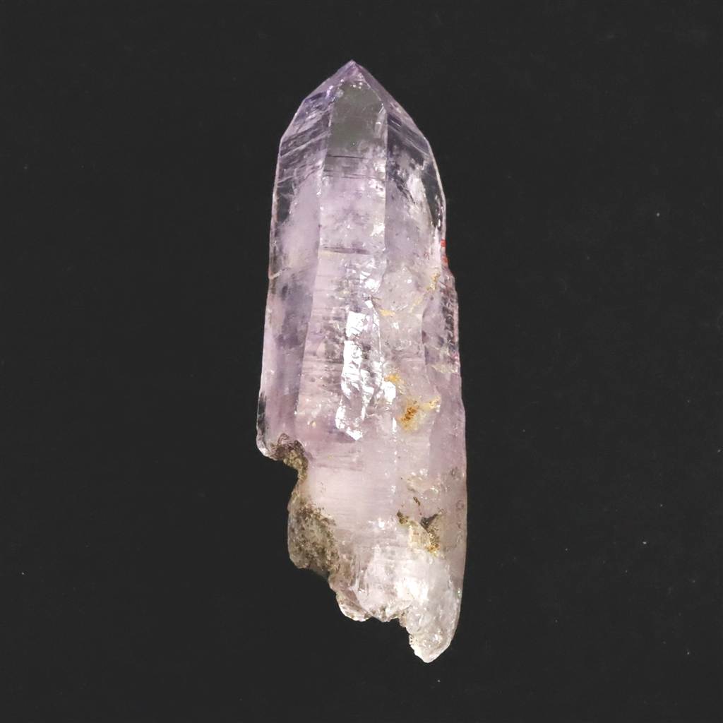 ◆ メキシコ・ベラクルス州ラス・ビガス鉱山より産出された、アメジストの結晶ポイントです。「世界で最も透明度が高いアメジスト」という評価に違わず、内部のインクルージョンを透かして見るようなクリアな質感が特徴です。本品は、この産地としては希少な39gオーバーの重量を持ち、指先サイズが一般的なベラクルス産の中で確かな存在感を放っています。柱面には成長の証である条線(ストリエーション)が走り、根元には母岩由来の鉱物が付着しており、熱水脈の中で長い時間をかけて育まれた地質学的な背景を物語っています。