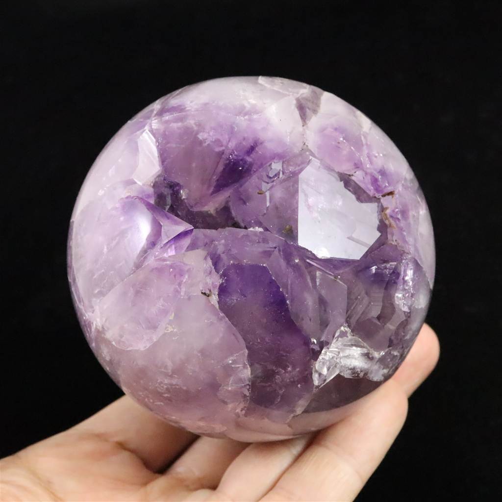 ブラジル産 アメジスト 79mmスフィア 丸玉 笑口 台付 270g (ID:72557)