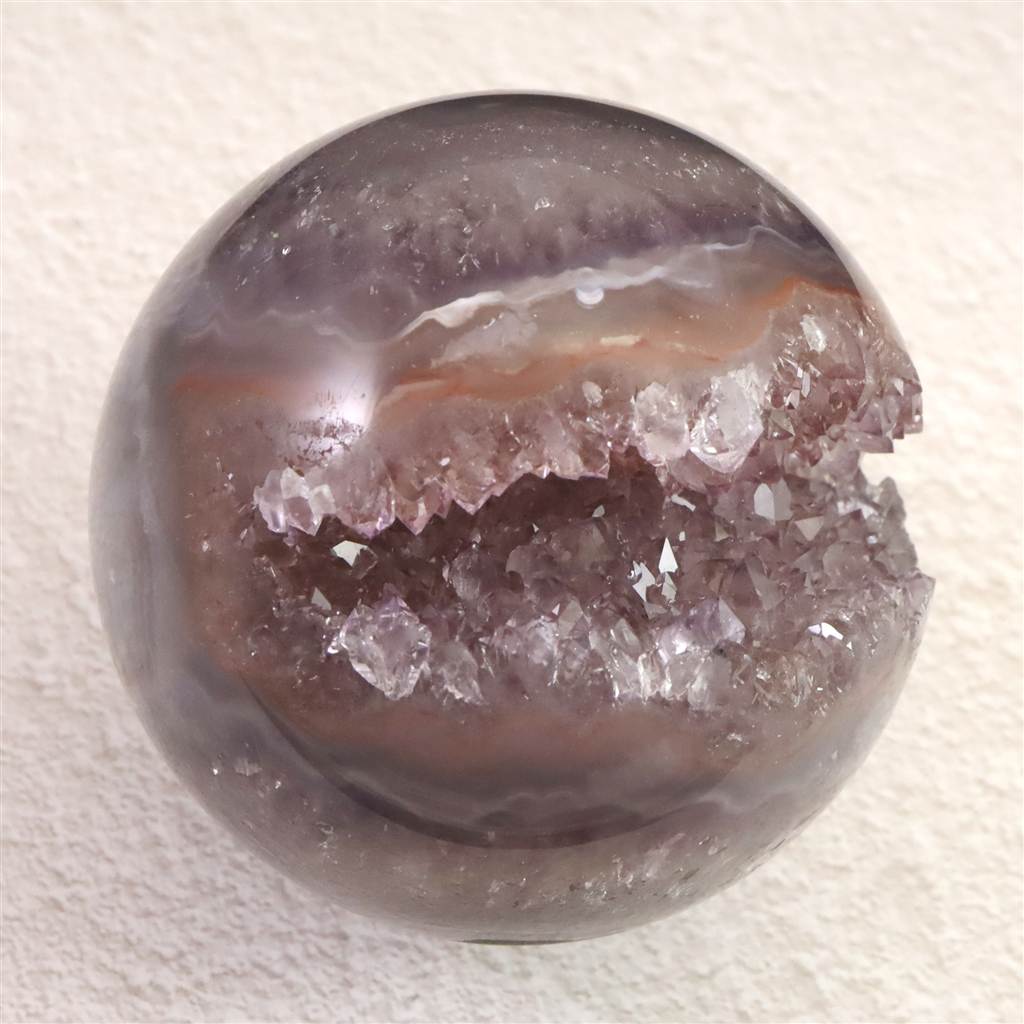 ブラジル産 アメジスト 77mmスフィア 丸玉 笑口 台付 540g (ID:94274)
