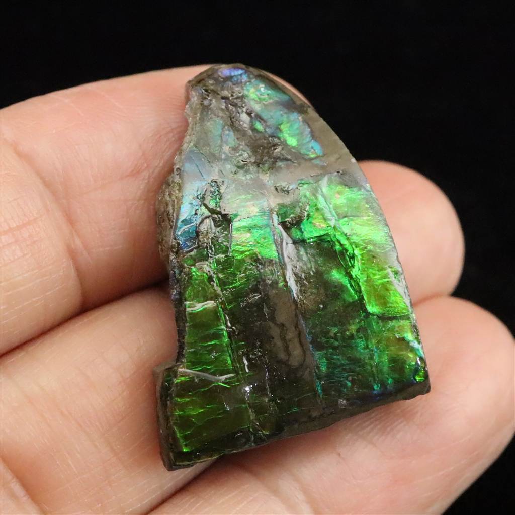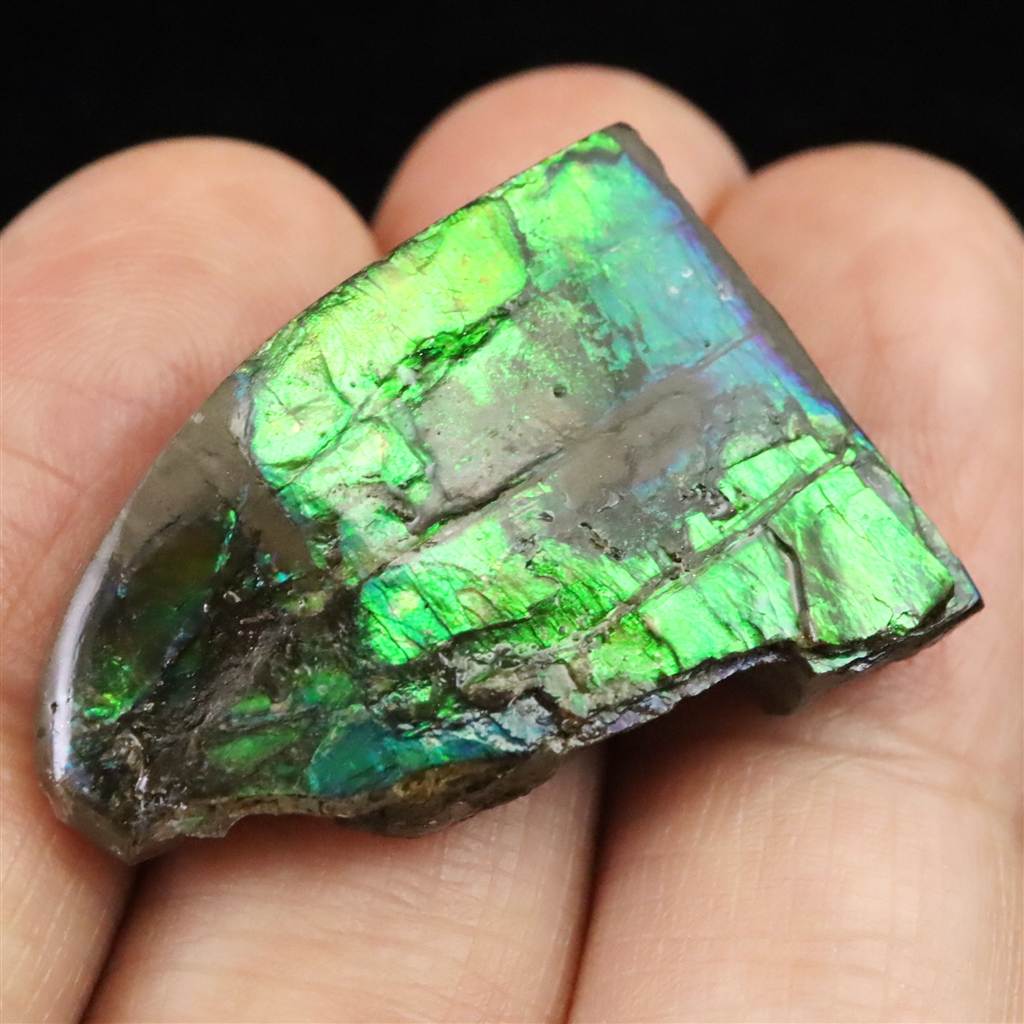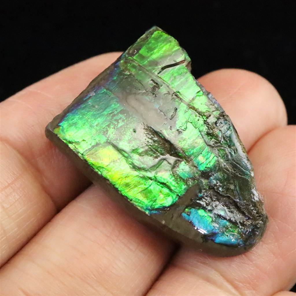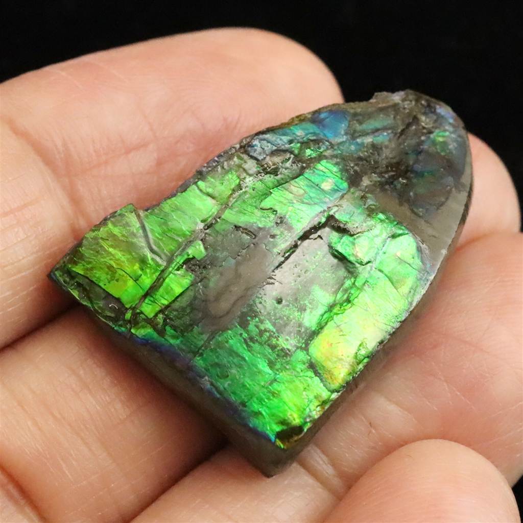 ◆ カナダ産のアンモライトは、化石化したアンモナイトの殻が多彩な色や模様で輝く希少な宝石や装飾品として知られています。アンモナイトは、約6,500万年前から約6,600万年前にかけての白亜紀後期から始新世初期にかけての時代に生息していた、古代の海生軟体動物の一種です。 アンモライトは、アンモナイトの外殻が鉱化する過程で、鮮やかな色や模様が形成されたものです。これらの色と模様は、鉱物や微小な結晶の配置によって生み出され、非常に美しい光沢を持っています。一般的な色には、緑、青、紫、黄、赤、オレンジなどがあります。 カナダでは、アルバータ州南部の一帯でアンモライトが採掘されています。特に有名なのは、カナダロッキーやバッドランズ地域で発見されるもので、その美しさから宝石やジュエリーとして利用されることがあります。アンモライトは、希少性と美しい色彩から、コレクターや宝飾愛好家に人気があります。