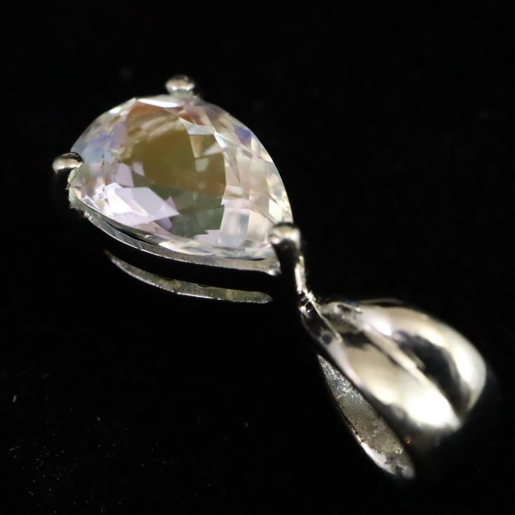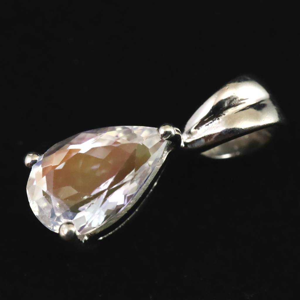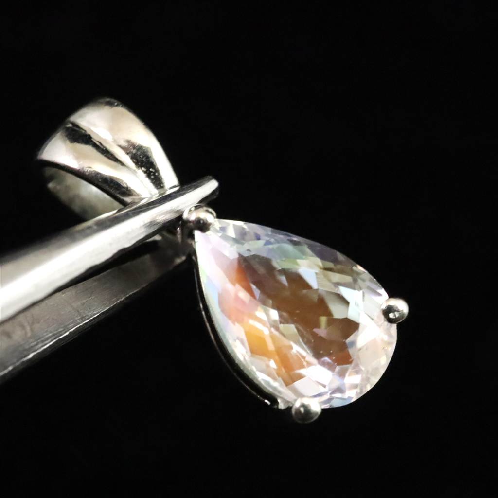 ◆ マダガスカル産アンデシンラブラドライト(レインボームーンストーン)のペンダントトップです。長石に属し、アンデシンとラブラドライトの中間組成をもつ鉱物で、透明度が高く、表面に虹色のシラーが広がる幻想的な美しさが魅力です。角度により青や緑、橙など多彩に変化する輝きは、まるでレインボーの光を映すように華やかさを添えます。インドやスリランカでは「月の石」として古くから親しまれ、ヨーロッパでも19世紀に人気を博しました。近年はマダガスカル産の高品質結晶が限られた鉱床から少量のみ産出するため流通量は少なく、希少性の高い天然石として注目されています。