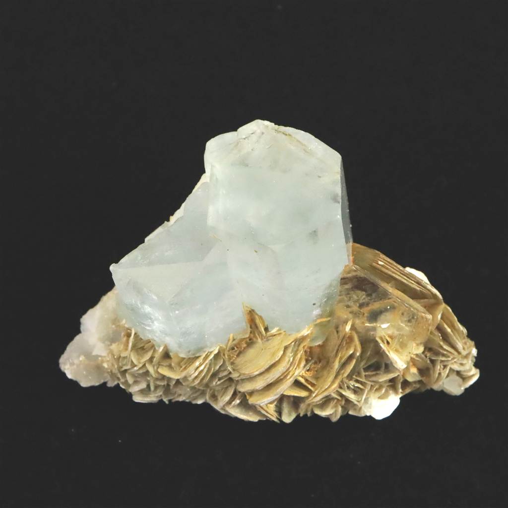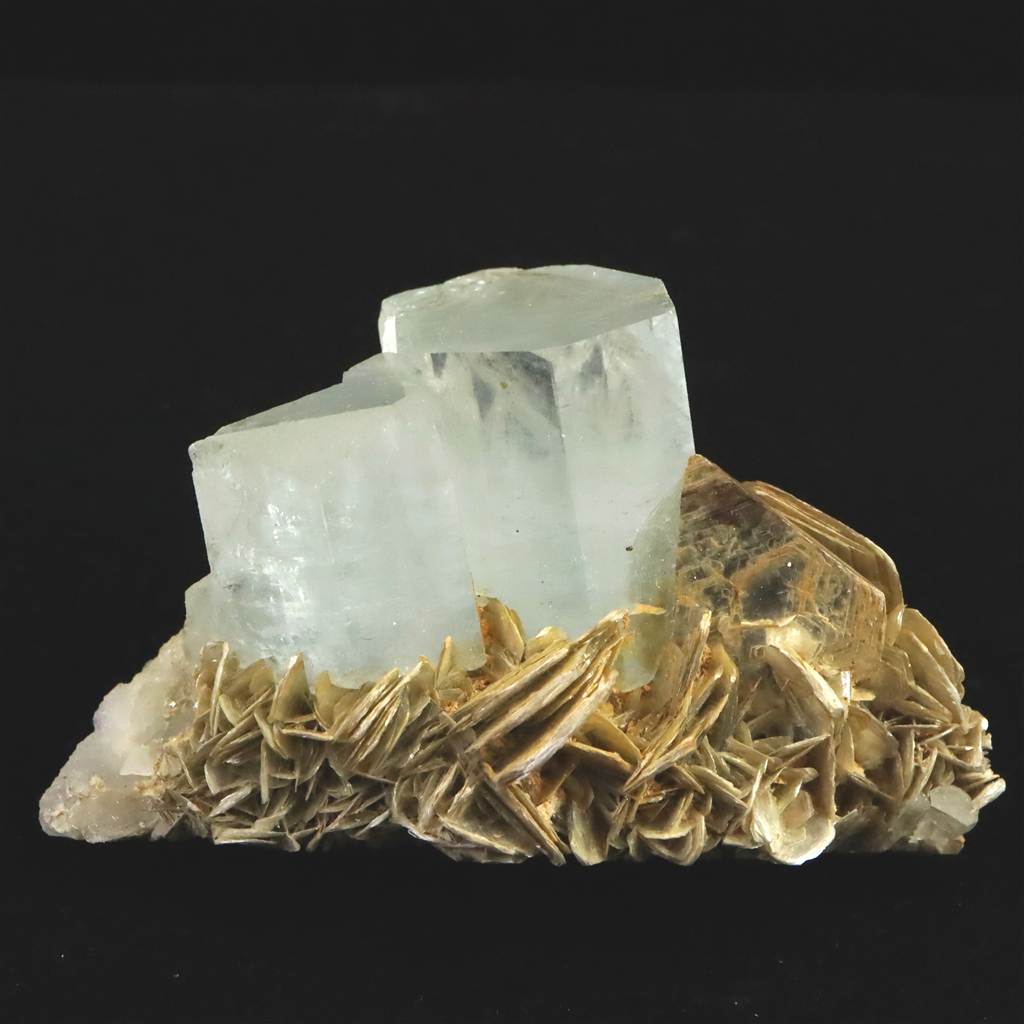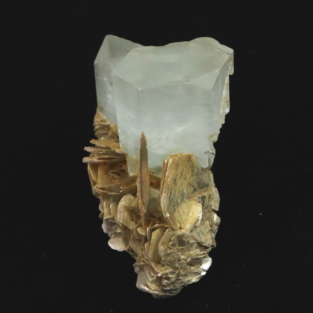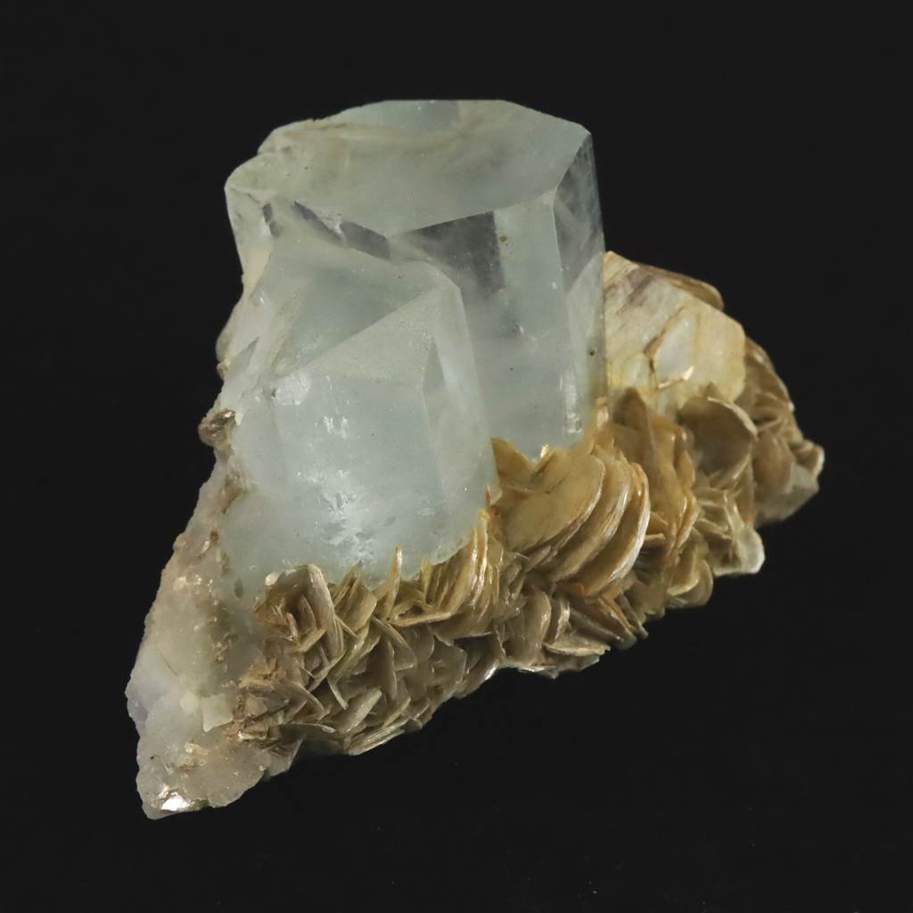 本品は、そのナガール渓谷で採掘された雲母付きのアクアマリン・クラスターです。非処理、非加熱となります。淡い金色の雲母がアクアマリンに付着してブルーと金色のコントラストが美しい結晶です。