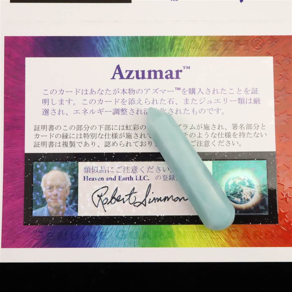 ◆ ロバート・シモンズ氏より....アズマーのエネルギーはまるで水のように流れ、身体の内側の水が至福のリズムを持った大海へと変容していくような感覚を味わいました。 アズマーのエネルギーはすべての細胞をリフレッシュし、活性化し、再生させるようです。アズマーは素晴らしいヒーリングの石で、感情体に光をもたらし、安らかで歓びに満ちた力強い波動によってネガティブなしこりのようなものを難なく解放するでしょう。怒りや憎しみ、恐れやストレスを、神聖さや、喜び、そして確信と愛へと変容するのです。また、透視能力やテレパシー的な感応力、視覚力などの幅を拡げます。アズマーとワークする人は、その力強い歓びのエネルギーを体感するでしょう、アズマーは内観とコミュニケーションの石です。物事の中心にあるものを見極め、その人の奥底の真実に忠実に表現し伝える力をもたらします。また、慈悲の石でもあり、他者に対する共感や配慮を持つ能力を高めます。「アーススピリット」の石でもあり、地球の惑星意識との協調をもたらします。水のエレメントの石として働き、海の生物たち、特に鯨やイルカたちとのっながりを強めるでしょう。 霊的な自己ヒーリングの場において、アズマーを循環器系や神経系統に関して使用することを推薦します。身体のエネルギーと共鳴し、水や電気化学的なエネルギーの流れを含む身体システム全体へ、確かな健やかさのパターンをもたらすでしょう。