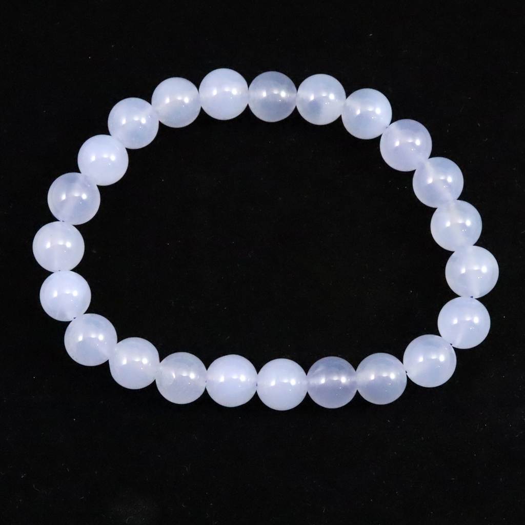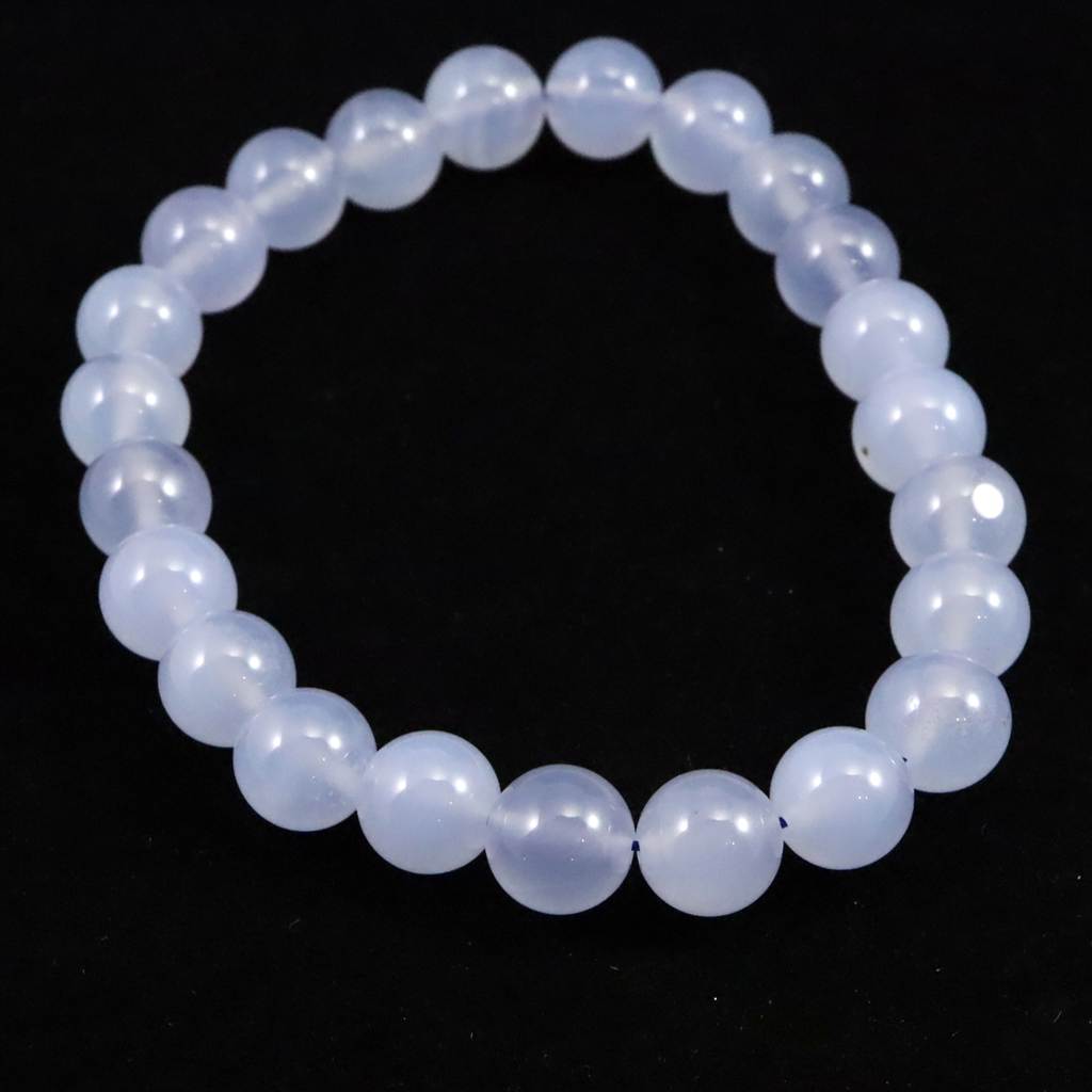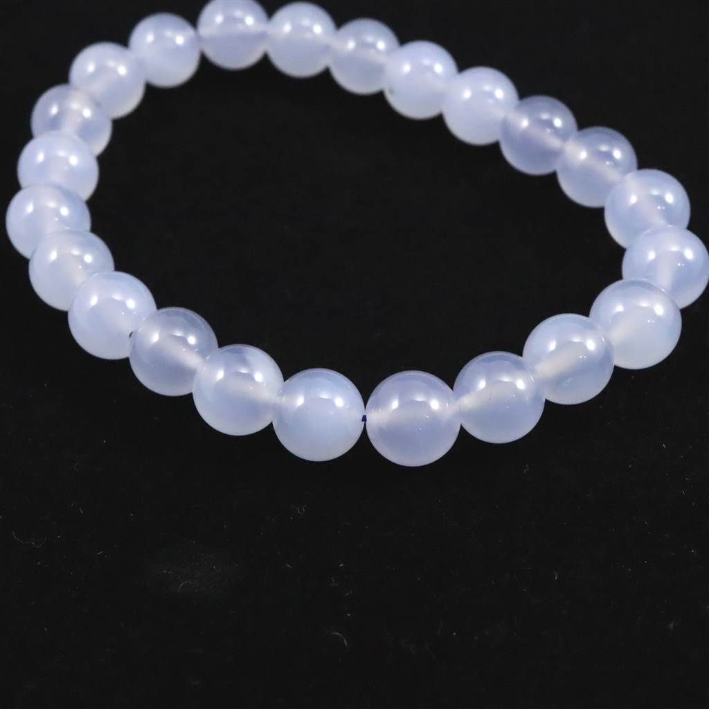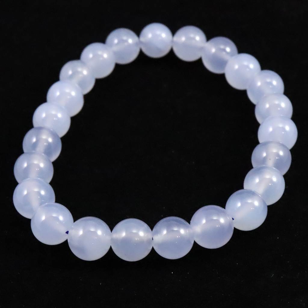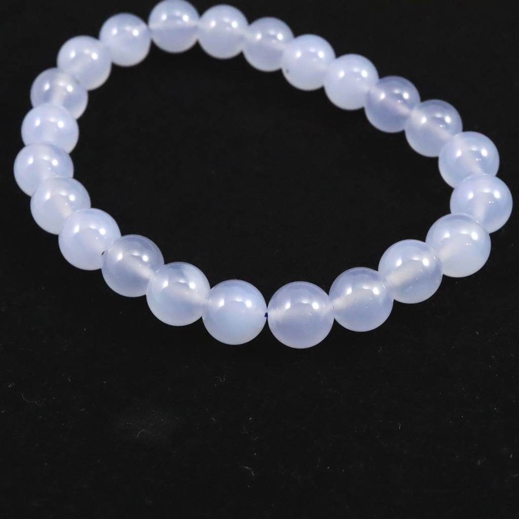 ブルーカルセドニー 8.5mm玉ブレスレット 19.3g (ID:76766)