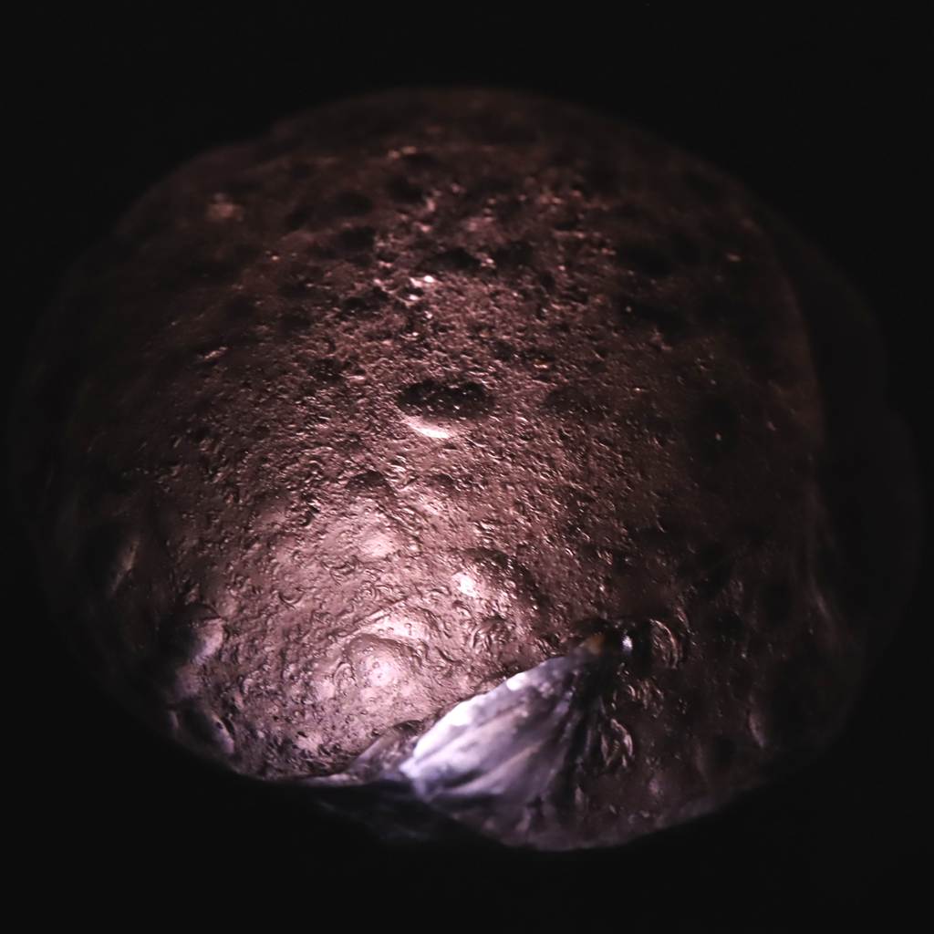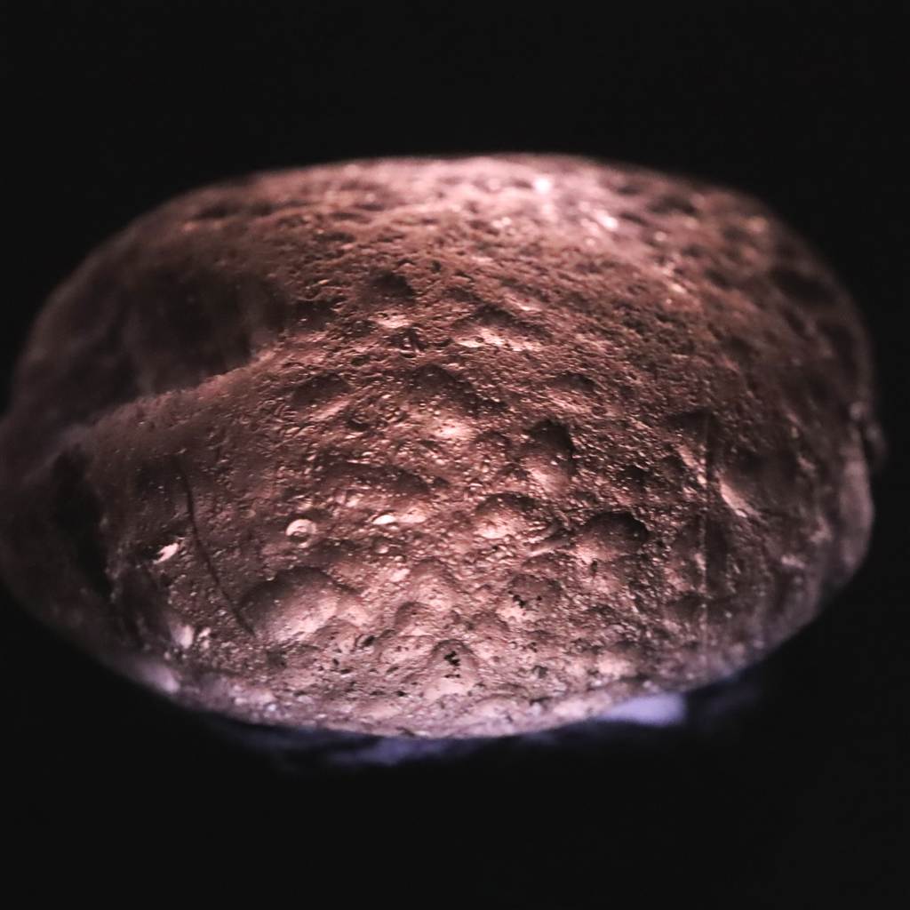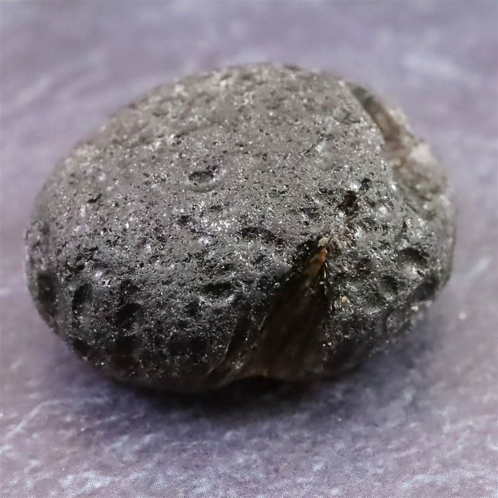 ◆ コロンビア産の天然ガラス「コロンビアナイト」です。黒濃褐色の外観ながら、 光を透かすと灰紫色、スモーキートーンの色味が浮かび上がる個性的な石です。 約3千万年前の形成とされ、希少な鉱物的存在として知られています。 オブシディアン状のガラス構造ゆえに、結晶ではなくガラス質の質感が特徴です。 産地のコロンビア・カウカ渓谷で手作業による採取が行われています。
