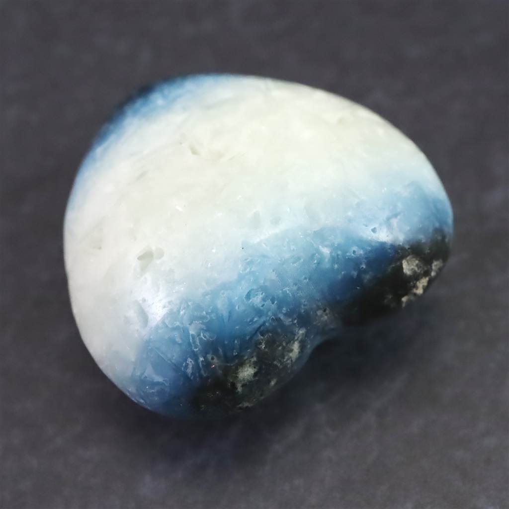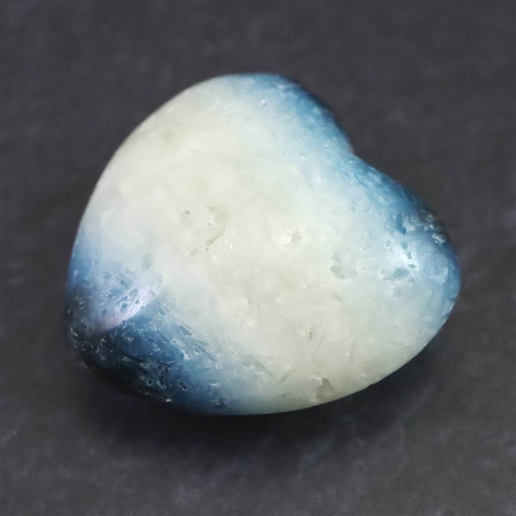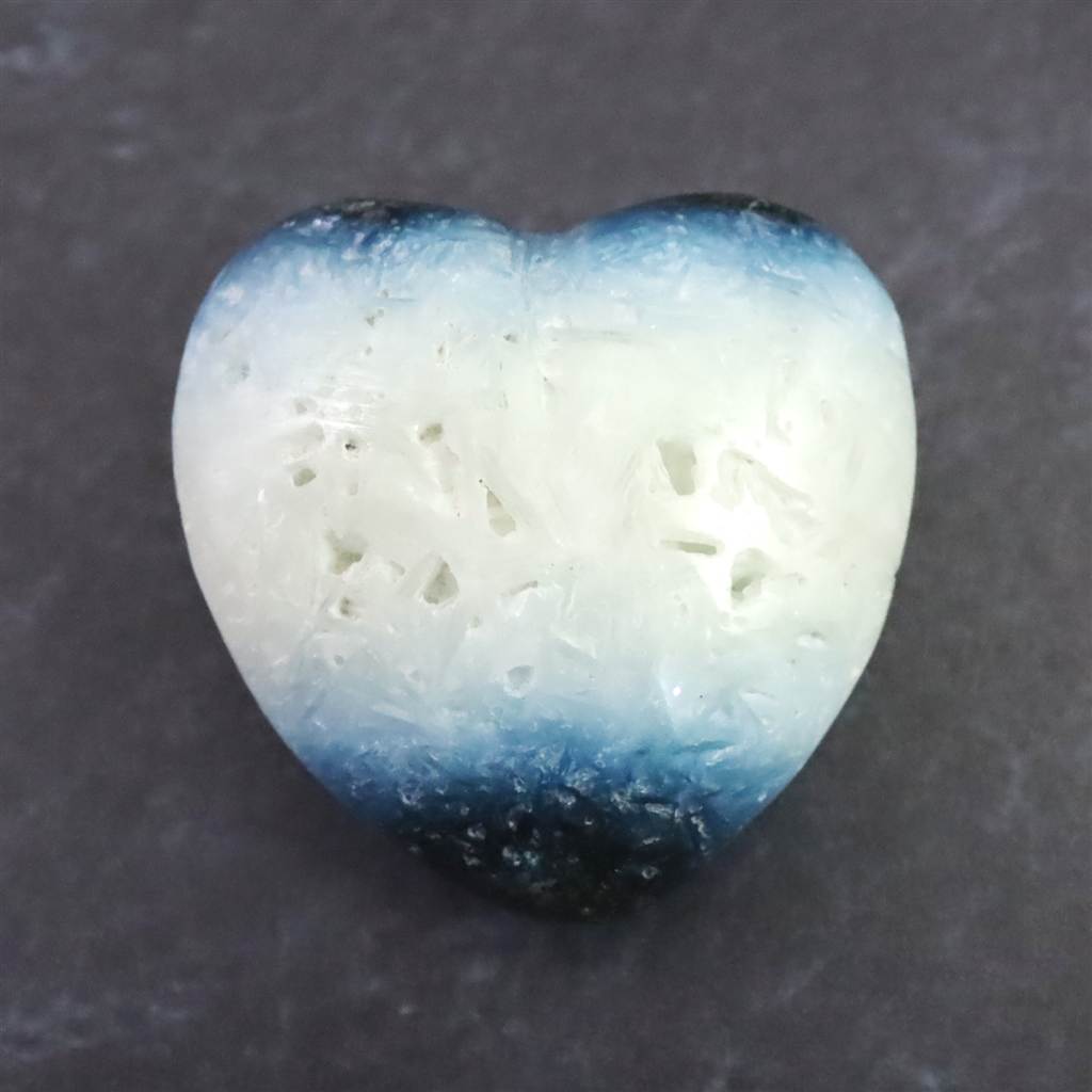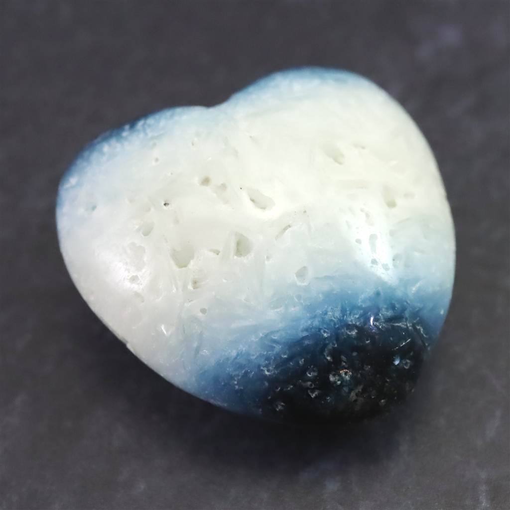 ◆ ロバート・シモンズ氏より....グレイシアライト(氷河石)は近年インドネシアで発見された新しい石です。この石は層状に産出し、通常、中心部は白く、縁は豊かな青色をしています。青い部分の外側には黒や灰色の地殻があります。その青白い色調が氷河の氷を連想させることから、私たちはこれをグレイシアライトと名付けました。グレイシアライトは、瞑想の深さと力を高めるために重要な石です。思考を静め、クラウン・チャクラを即座に開きます。そうすることで、意識を上昇させ、拡大させることができます。さらに数分すると、氷河のエネルギーはサードアイのチャクラと、後頭部にある神の口のチャクラを開き、エネルギーは喉のチャクラ、そしてハートへと降りていくでしょう。最終的には、セントラル・チャネルの7つのチャクラすべてに浸透し、活性化させます。グレイシアライトのエネルギーは、広大に拡大された意識の場を作り出し、人の内なる知性を高めます。グレイシアライトは、ストレスを解消し、疲労から解放するヒーリング効果をもたらします。