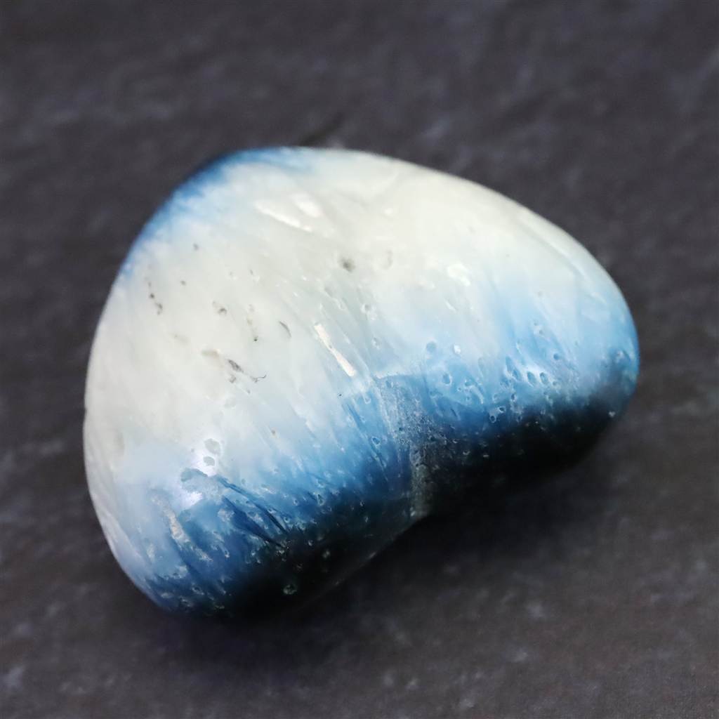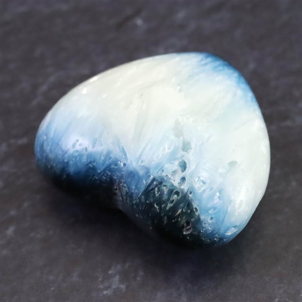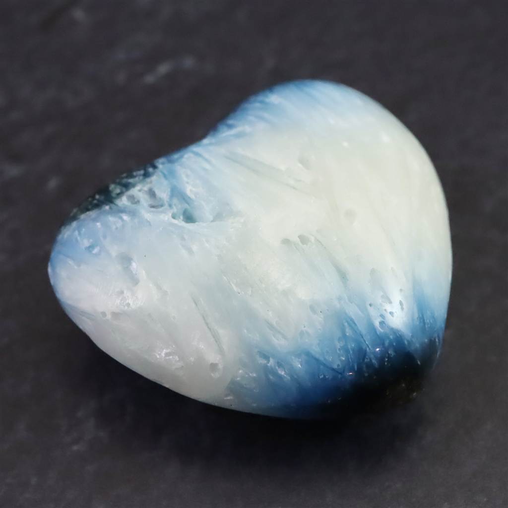◆ ロバート・シモンズ氏より....グレイシアライト(氷河石)は近年インドネシアで発見された新しい石です。この石は層状に産出し、通常、中心部は白く、縁は豊かな青色をしています。青い部分の外側には黒や灰色の地殻があります。その青白い色調が氷河の氷を連想させることから、私たちはこれをグレイシアライトと名付けました。グレイシアライトは、瞑想の深さと力を高めるために重要な石です。思考を静め、クラウン・チャクラを即座に開きます。そうすることで、意識を上昇させ、拡大させることができます。さらに数分すると、氷河のエネルギーはサードアイのチャクラと、後頭部にある神の口のチャクラを開き、エネルギーは喉のチャクラ、そしてハートへと降りていくでしょう。最終的には、セントラル・チャネルの7つのチャクラすべてに浸透し、活性化させます。グレイシアライトのエネルギーは、広大に拡大された意識の場を作り出し、人の内なる知性を高めます。グレイシアライトは、ストレスを解消し、疲労から解放するヒーリング効果をもたらします。