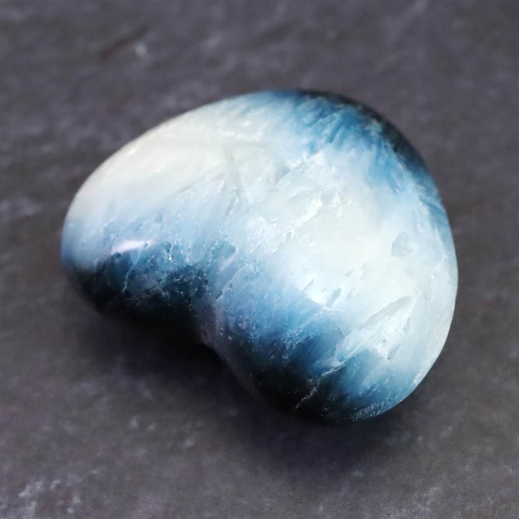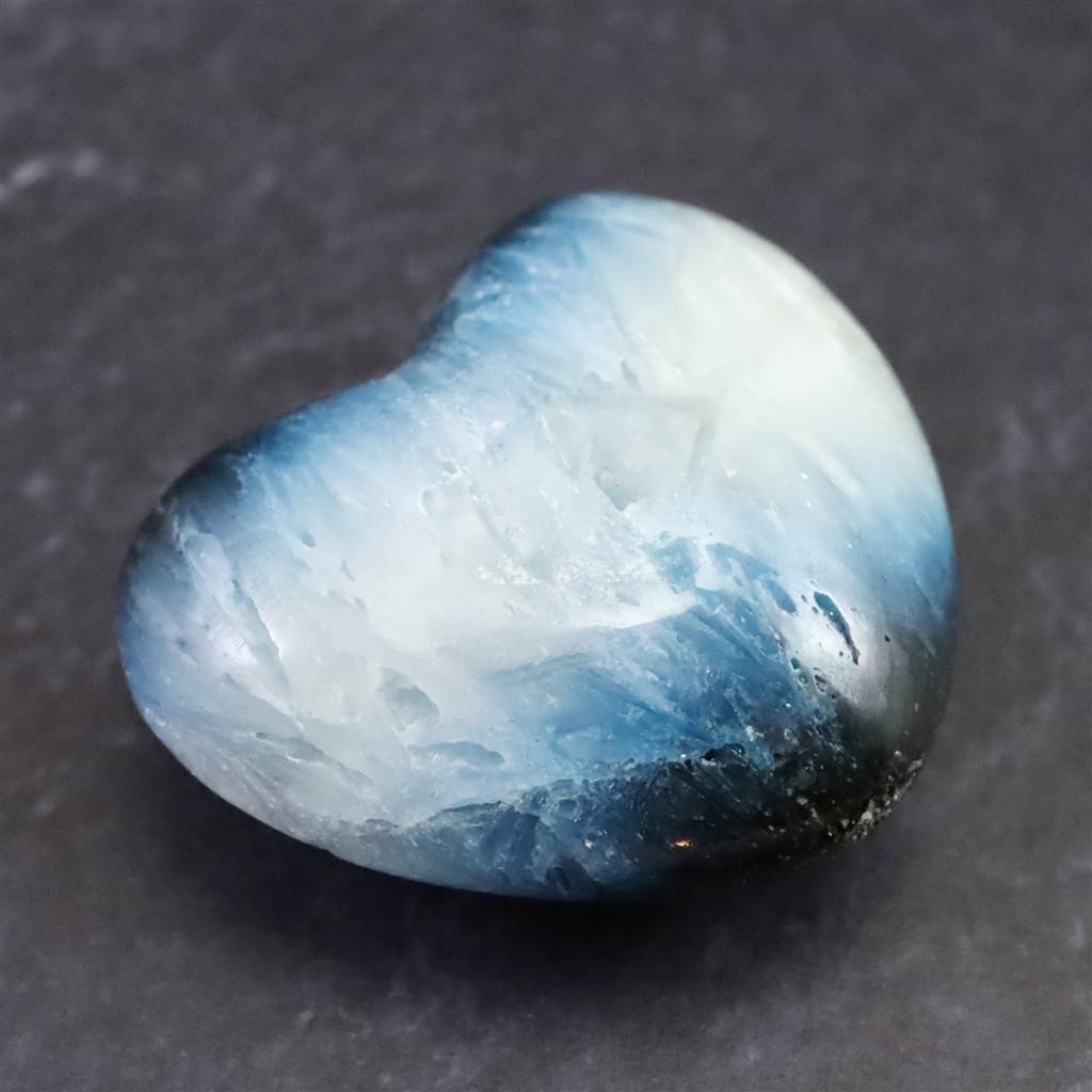 ◆ ロバート・シモンズ氏より....グレイシアライト(氷河石)は近年インドネシアで発見された新しい石です。この石は層状に産出し、通常、中心部は白く、縁は豊かな青色をしています。青い部分の外側には黒や灰色の地殻があります。その青白い色調が氷河の氷を連想させることから、私たちはこれをグレイシアライトと名付けました。グレイシアライトは、瞑想の深さと力を高めるために重要な石です。思考を静め、クラウン・チャクラを即座に開きます。そうすることで、意識を上昇させ、拡大させることができます。さらに数分すると、氷河のエネルギーはサードアイのチャクラと、後頭部にある神の口のチャクラを開き、エネルギーは喉のチャクラ、そしてハートへと降りていくでしょう。最終的には、セントラル・チャネルの7つのチャクラすべてに浸透し、活性化させます。グレイシアライトのエネルギーは、広大に拡大された意識の場を作り出し、人の内なる知性を高めます。グレイシアライトは、ストレスを解消し、疲労から解放するヒーリング効果をもたらします。