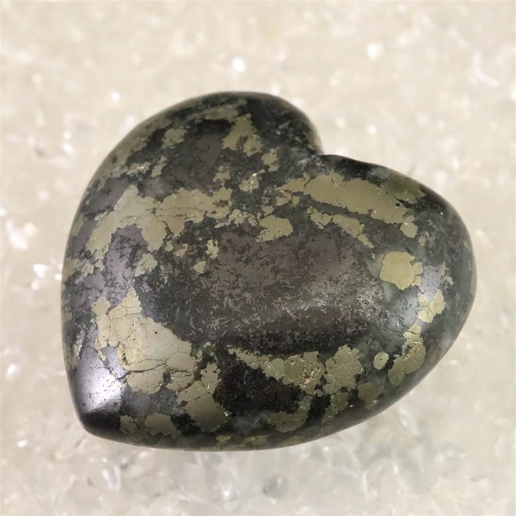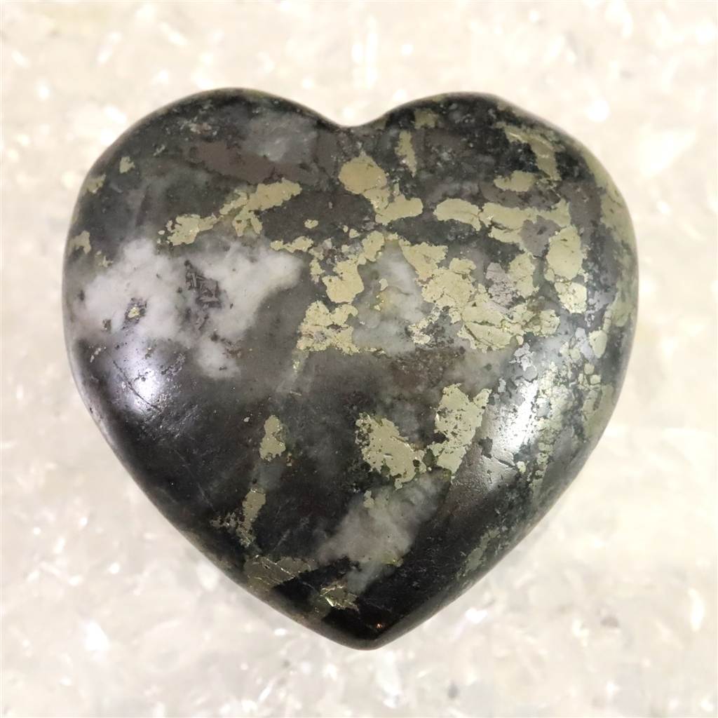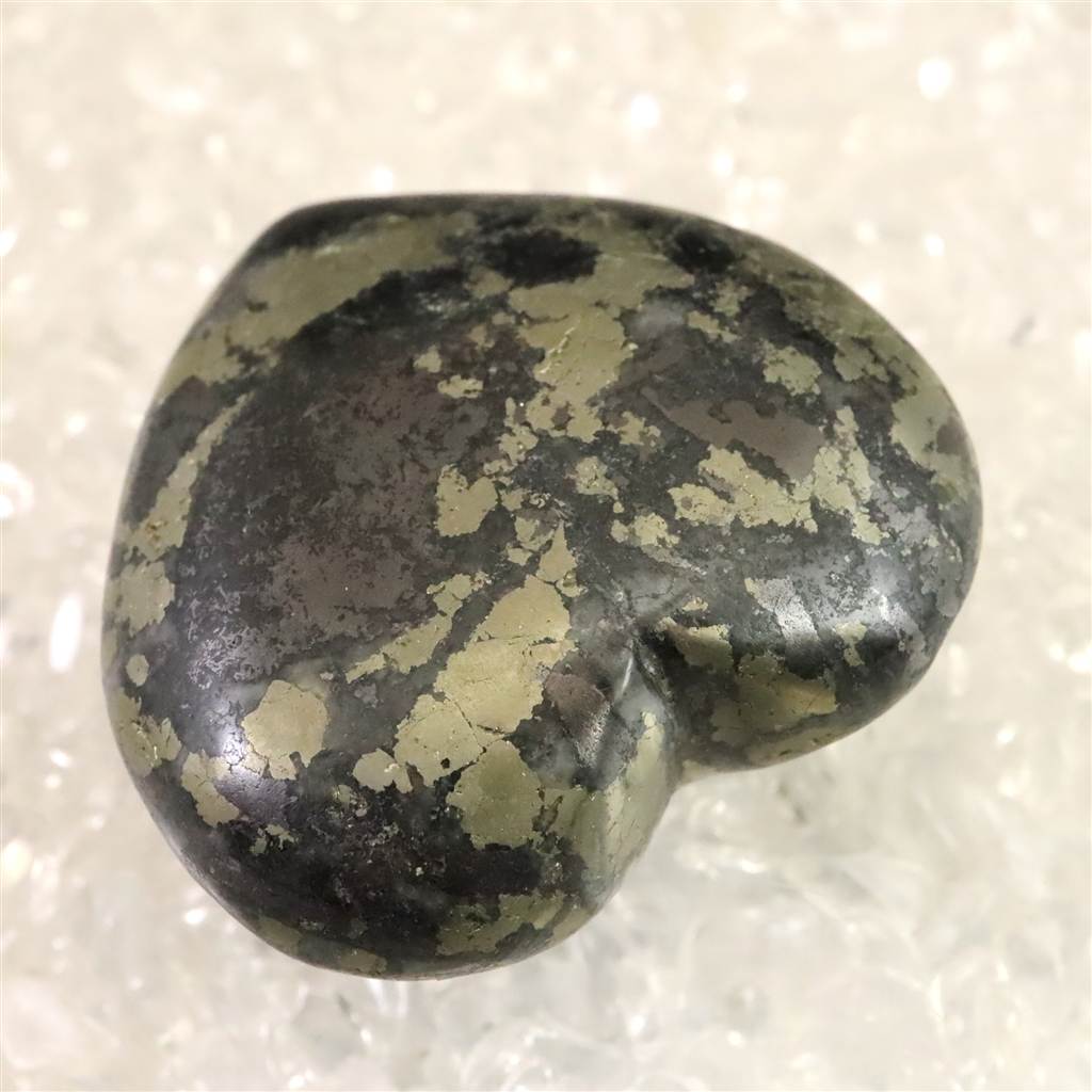 ◆ ヒーラーズゴールドは、アリゾナで採掘されたパイライトとマグネタイト(磁鉄鋼)の混合石です。めったにないようなパワフルで完全なエネルギーを発している石です。敏感で悪いところのある身体を調整し、正しく組織させるでしょう。さらに劣っているチャクラを活性化させ、経線システムを通して繊細なエネルギーの流れを高めてくれます。ヒーラーズ・ゴールドは、アリゾナで採掘されたパイライトとマグネタイト(磁鉄鉱)のコンビのため名づけられました。パイライトは硬度6から6.5の硫化鉄で、マグネタイトは硬度5.5から6.5の酸化鉄です。この二つの鉱物はキューブ状の結晶になっていて黒と金色が、ときにすばらしい模様つくり出しています。