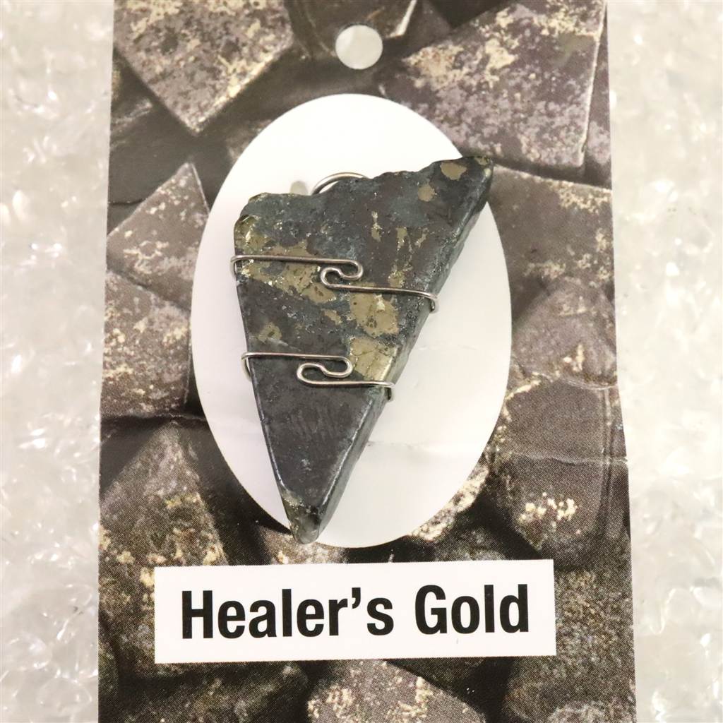 ◆ ヒーラーズゴールドは、アリゾナで採掘されたパイライトとマグネタイト(磁鉄鋼)の混合石です。めったにないようなパワフルで完全なエネルギーを発している石です。敏感で悪いところのある身体を調整し、正しく組織させるでしょう。さらに劣っているチャクラを活性化させ、経線システムを通して繊細なエネルギーの流れを高めてくれます。ヒーラーズ・ゴールドは、アリゾナで採掘されたパイライトとマグネタイト(磁鉄鉱)のコンビのため名づけられました。パイライトは硬度6から6.5の硫化鉄で、マグネタイトは硬度5.5から6.5の酸化鉄です。この二つの鉱物はキューブ状の結晶になっていて黒と金色が、ときにすばらしい模様つくり出しています。