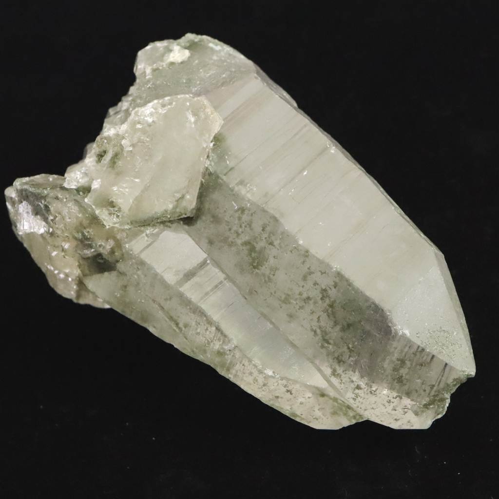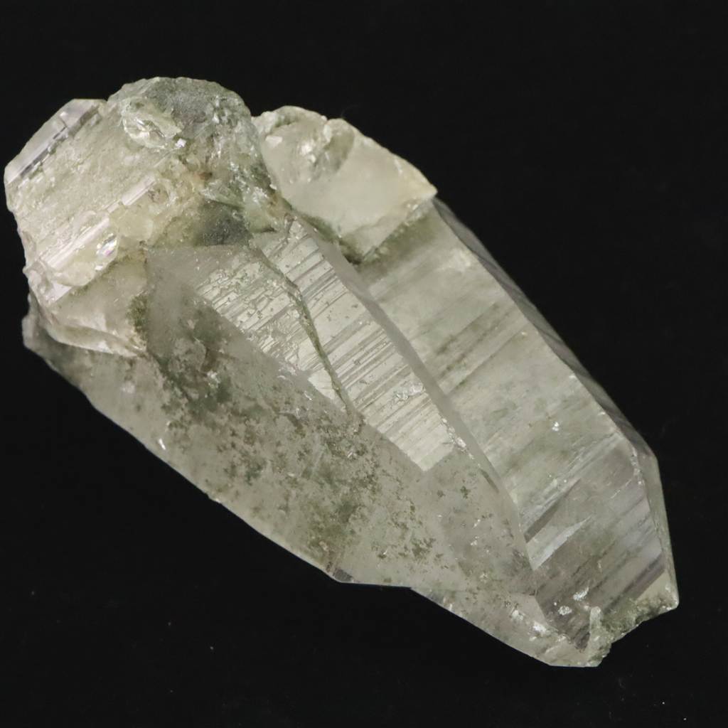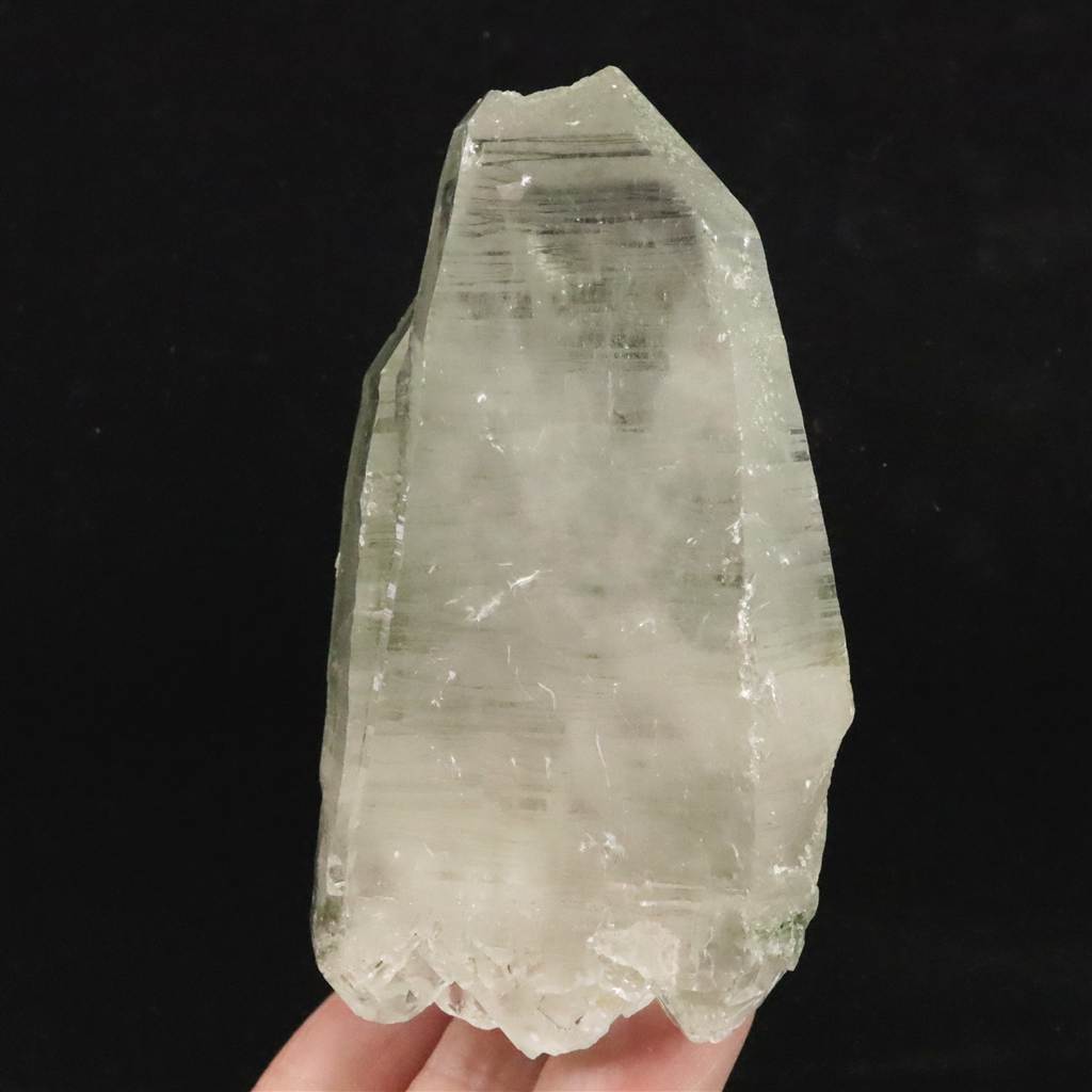 ◆ 本商品写真は現物のものです。写真の商品をお届けします。ガネーシュヒマールらしいクローライト入りの水晶です。根元がダイナミックにセルフヒールドされており、一部両剣になっています。ライト等で照らすと、内部の白い雲のようなインクルージョンも魅力的です。透明なところからルーペで覗くと、気泡が沢山入っており、水入りかもしれません。トップの欠けたところもセルフヒールドされており、クローライトが付着しています。沢山の特徴が魅力的な石です。