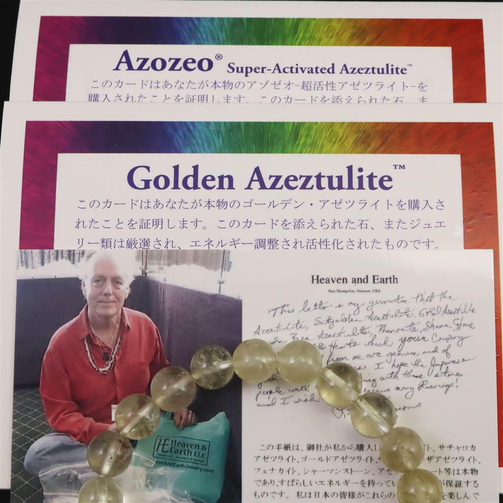 ◆ ロバートシモンズ氏によるコメント.....ゴールデンアゼツライトは、ノースカロライナにて最近発見された金色、黄褐色、または、ミルキーな水晶です。ゴールデンアゼツライトは、名無き光の純粋なゴールド/ホワイト・レイを放射し、過去のパターンの萎縮や崩壊を浄化します。この石は、ボディ、マインド、スピリットに霊的光を深く注入します。これは、純粋な愛の状態、光明、キリスト意識と繋がっています。ゴールデンアゼツライトは、まず第三の目、ハートとクラウン・チャクラを刺激し、完全なる本質の光輝をもたらしながら光で満たし続けます。ゴールド・アゼツライトは、ばらばらになった自身を、全体性の完成された耀く状態に変容することができるゴールド・レイの中でも最も強力な石です。