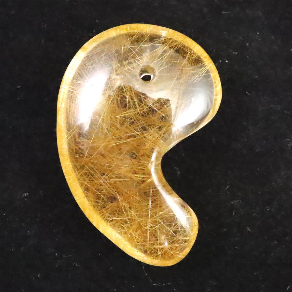 ヒマラヤ マニハール産 ゴールドルチル入り 水晶 34mm勾玉 10.7g (ID:71310)