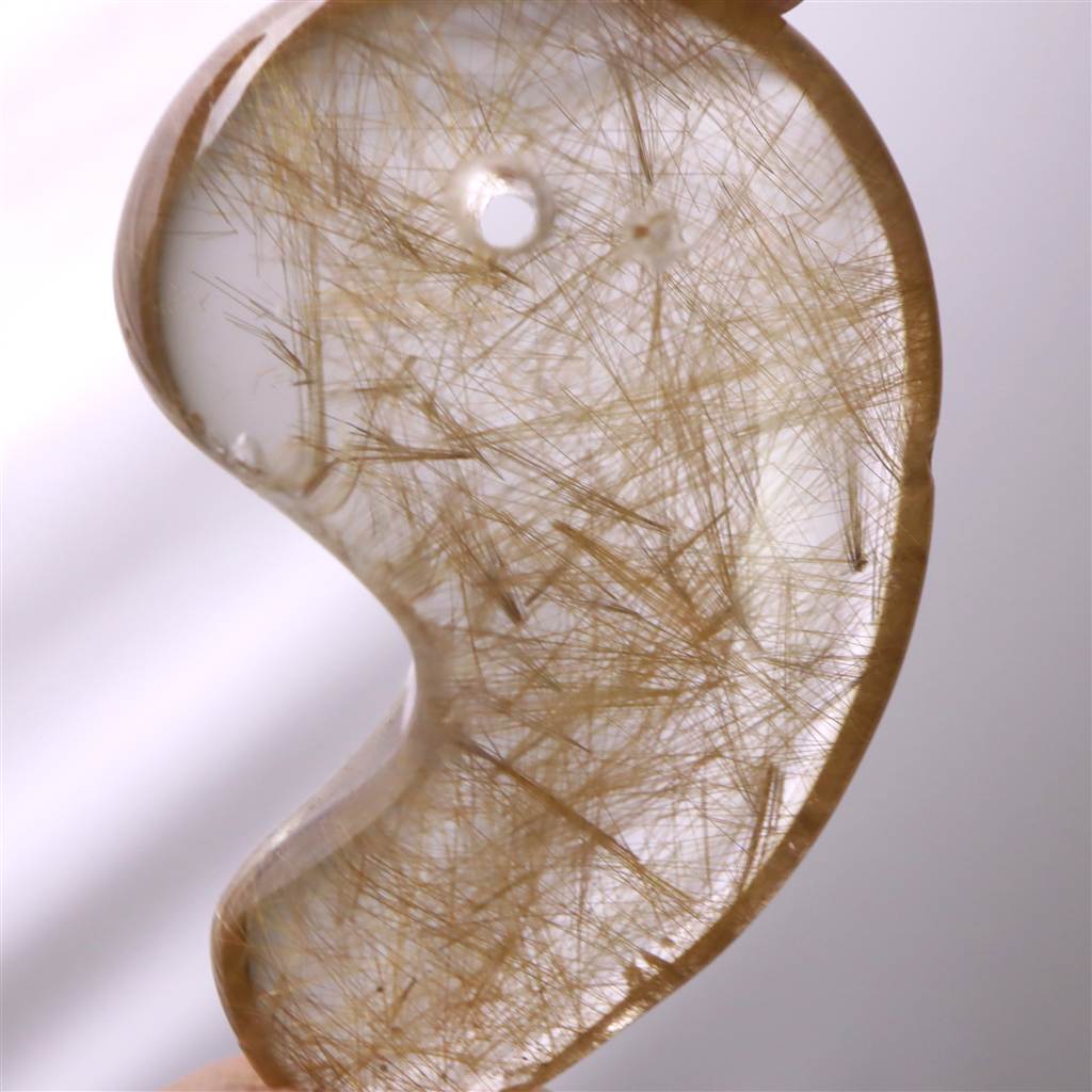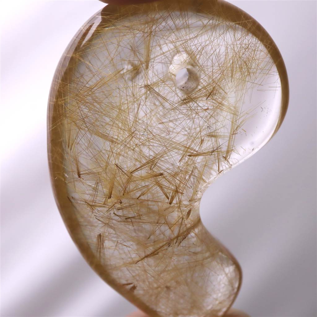 ◆ 本商品写真は現物のものです。写真の商品をお届けします。希少なゴールドルチル入りマニハール産水晶の勾玉です。