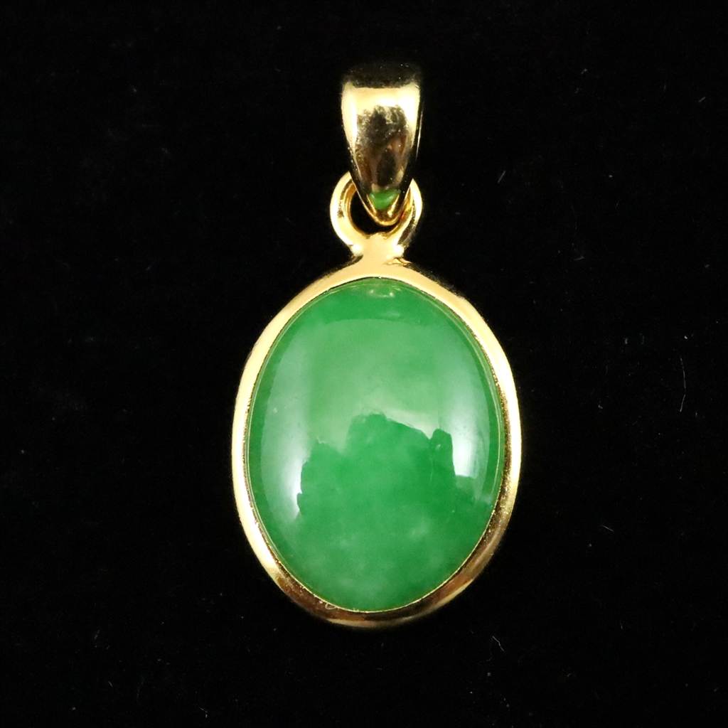 マダガスカル産 翡翠 ヒスイ 11mmオーバル ペンダントトップ 1.15g (ID:23423)