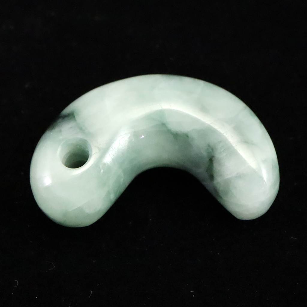 ◆ 小滝コン沢産の希少原石を使用して作られた勾玉です。勾玉(まが玉)の形に加工した、糸魚川産のグリーンの翡翠です。熟練職人の手によって、厳選したよい石の中の、更によい部分のみを削り出した勾玉です。