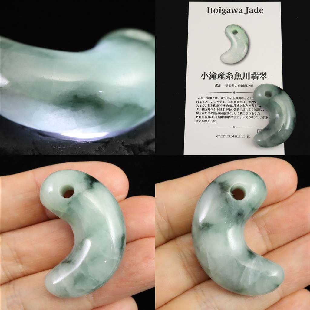 糸魚川翡翠 小滝産 35mm 勾玉 グリーン ディレクトリーカード付 15.16g (ID:62588)