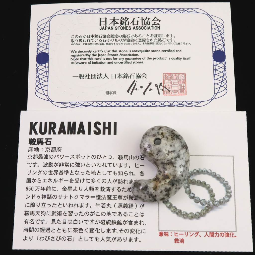 京都府産 鞍馬石 33mm勾玉 証明書付 8.8g (ID:49216)