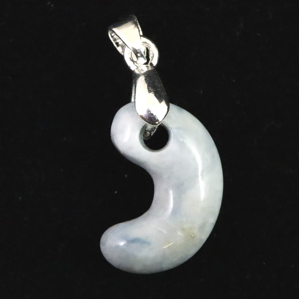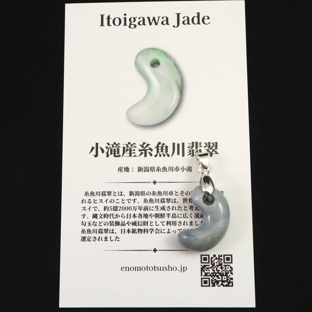 糸魚川翡翠 ヒスイ 小滝産 薄青 19mm勾玉 ペンダントトップ ディレクトリカード付 3.3g (ID:44485)