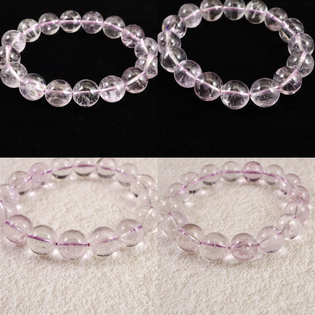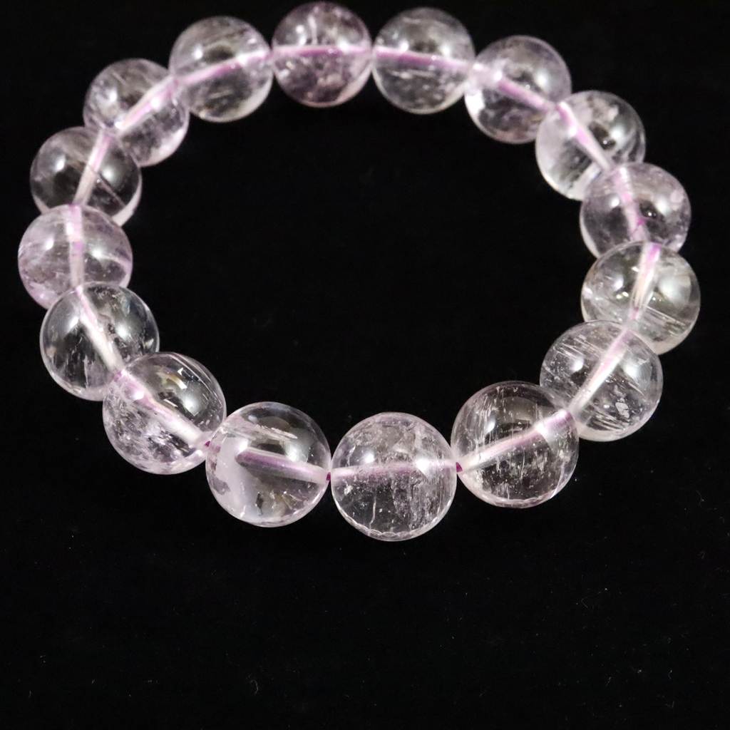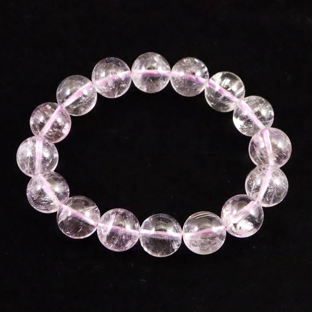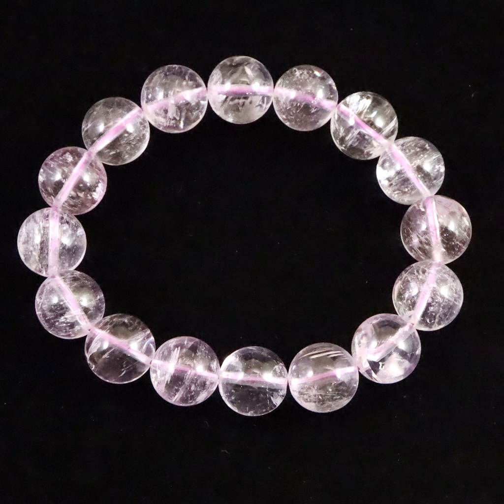 ブラジル産 未処理 クンツァイト 12mm玉ブレスレット 53.0g (ID:34550)