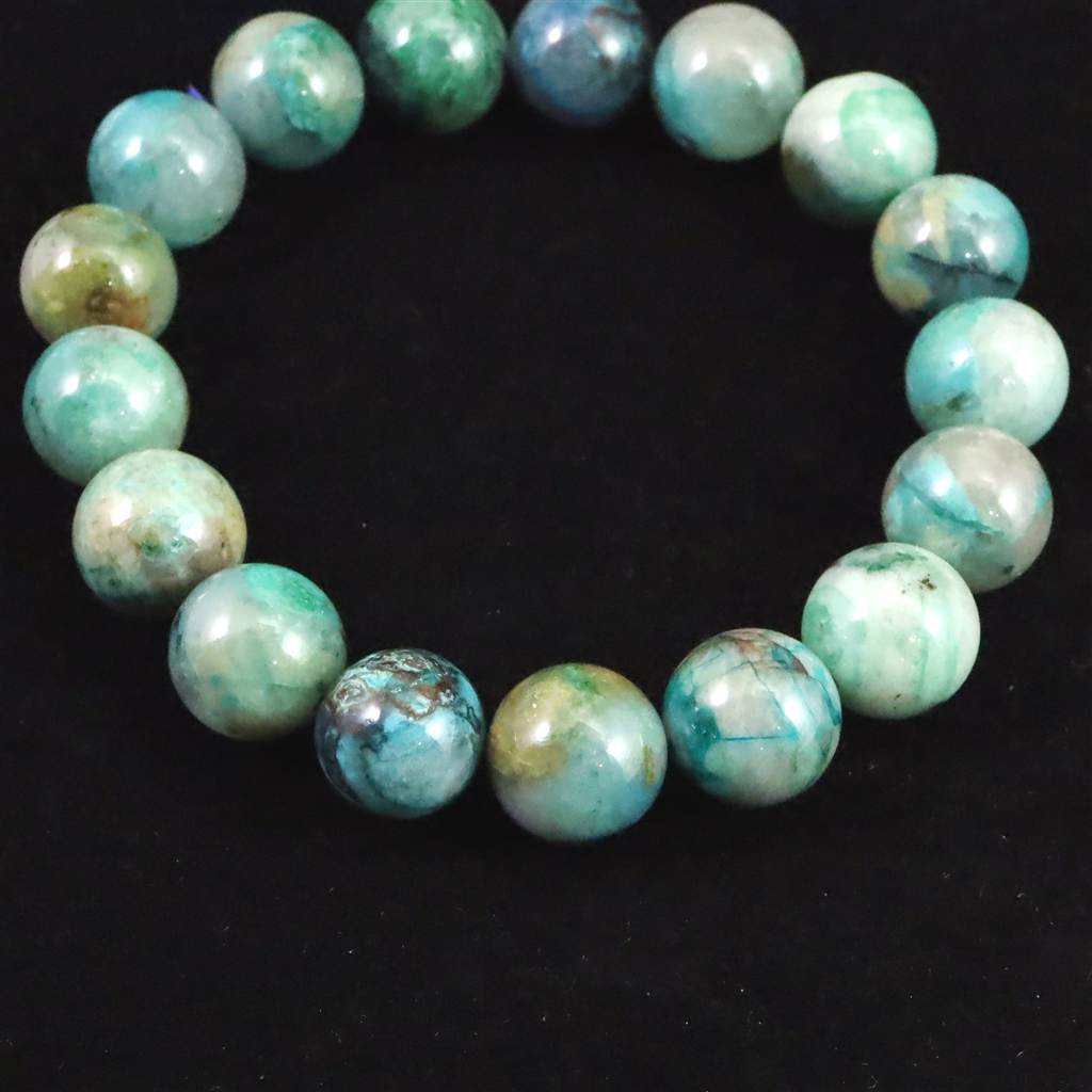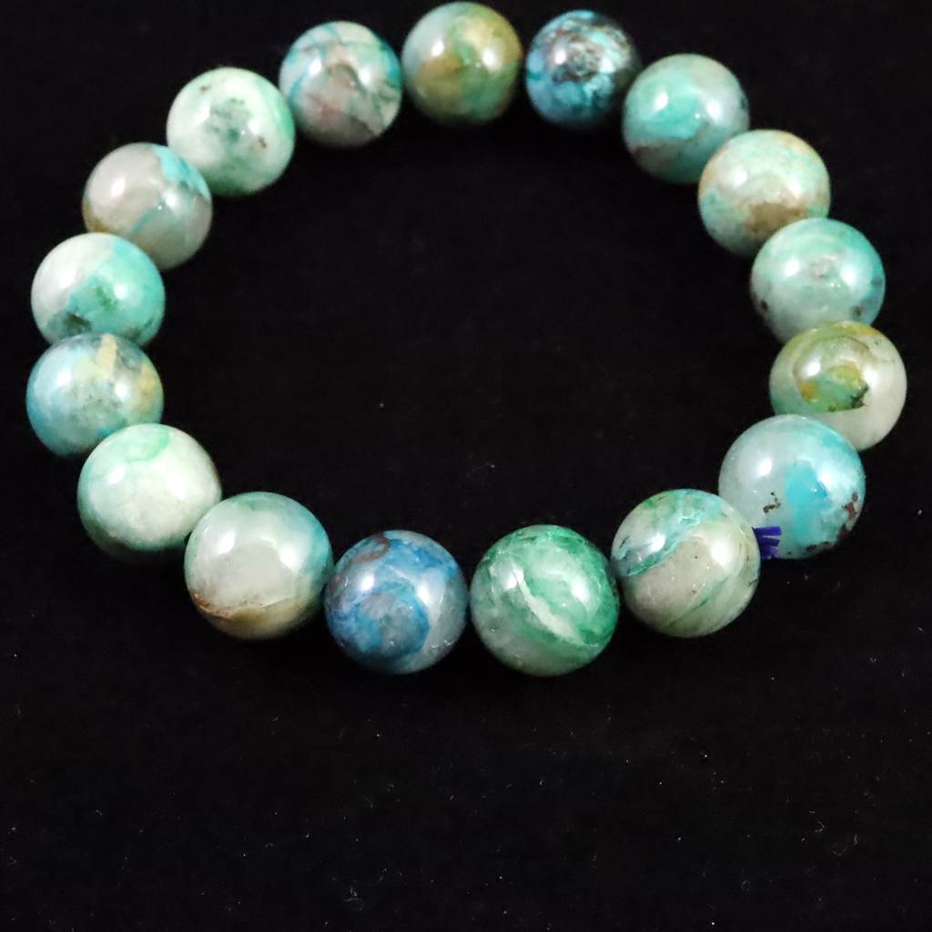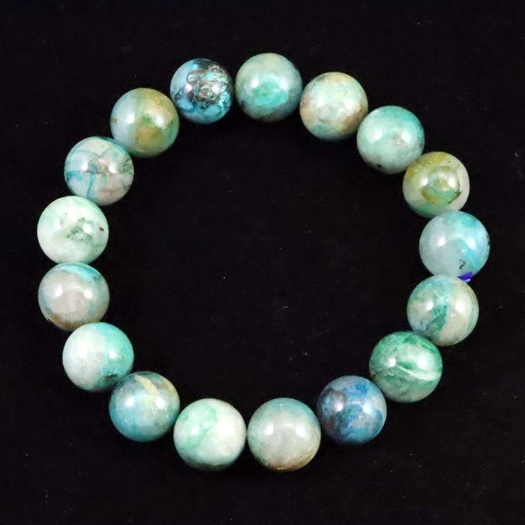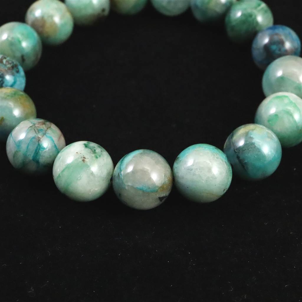 クリソコラシリカ 12.5mm玉ブレスレット 46.3g (ID:78963)