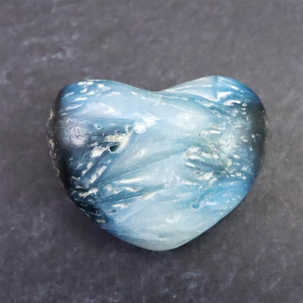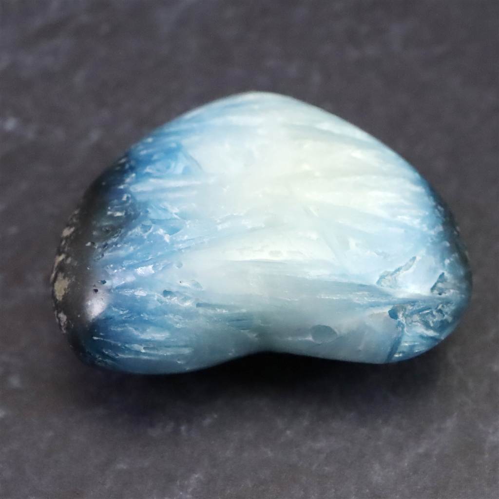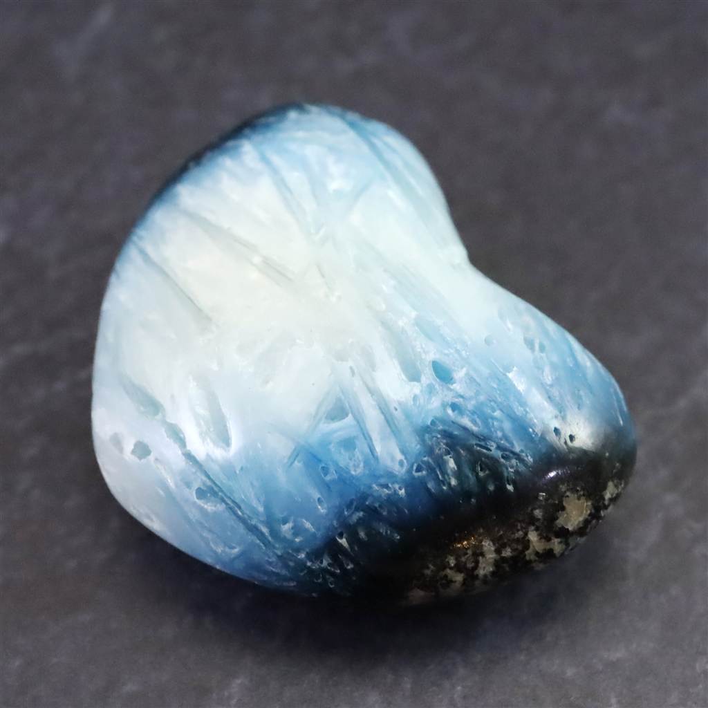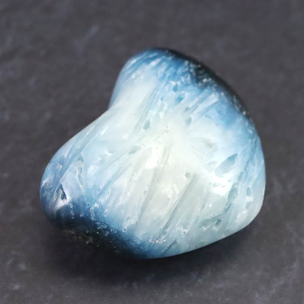 ◆ ロバート・シモンズ氏より....グレイシアライト(氷河石)は近年インドネシアで発見された新しい石です。この石は層状に産出し、通常、中心部は白く、縁は豊かな青色をしています。青い部分の外側には黒や灰色の地殻があります。その青白い色調が氷河の氷を連想させることから、私たちはこれをグレイシアライトと名付けました。グレイシアライトは、瞑想の深さと力を高めるために重要な石です。思考を静め、クラウン・チャクラを即座に開きます。そうすることで、意識を上昇させ、拡大させることができます。さらに数分すると、氷河のエネルギーはサードアイのチャクラと、後頭部にある神の口のチャクラを開き、エネルギーは喉のチャクラ、そしてハートへと降りていくでしょう。最終的には、セントラル・チャネルの7つのチャクラすべてに浸透し、活性化させます。グレイシアライトのエネルギーは、広大に拡大された意識の場を作り出し、人の内なる知性を高めます。グレイシアライトは、ストレスを解消し、疲労から解放するヒーリング効果をもたらします。